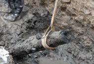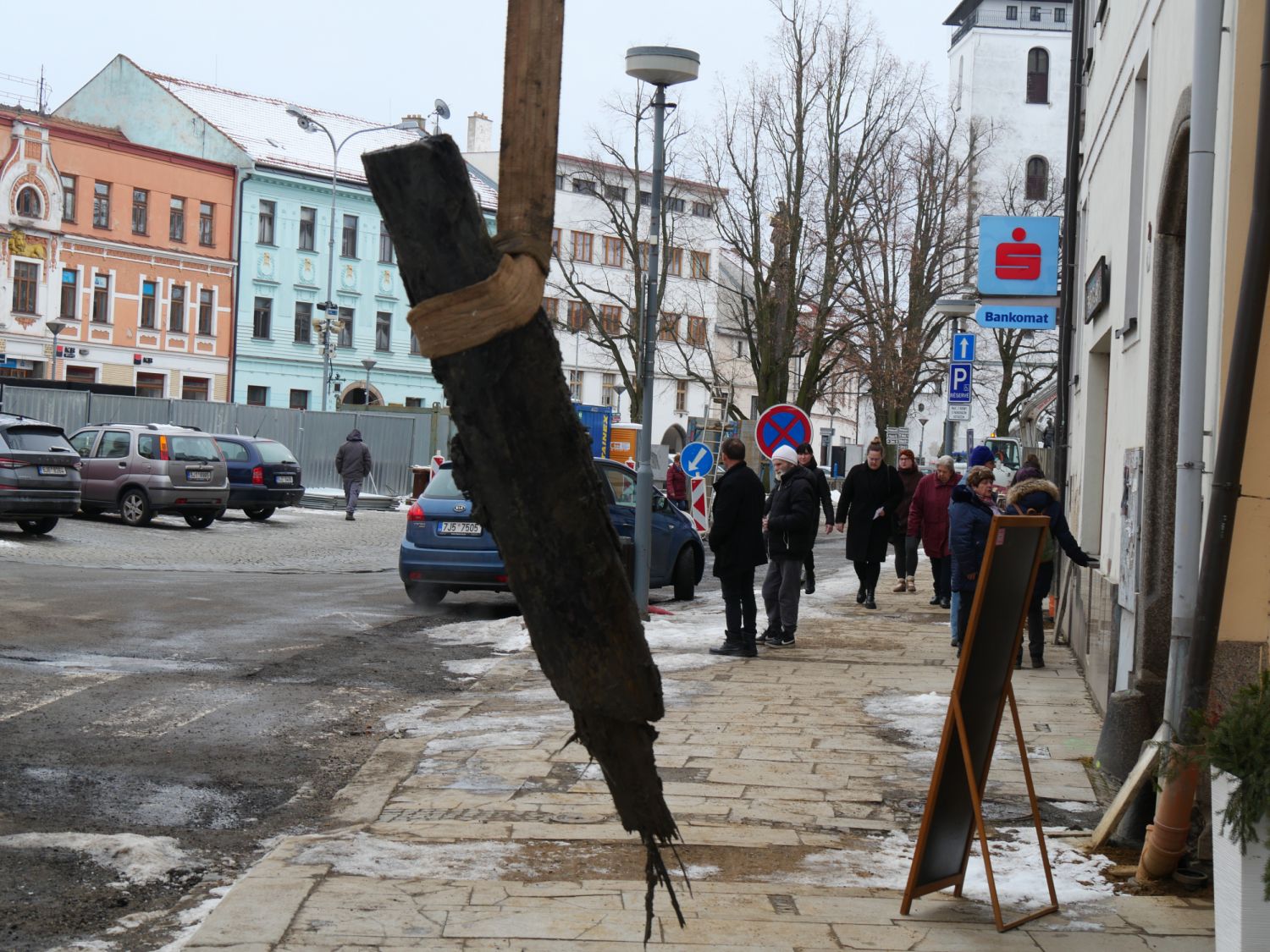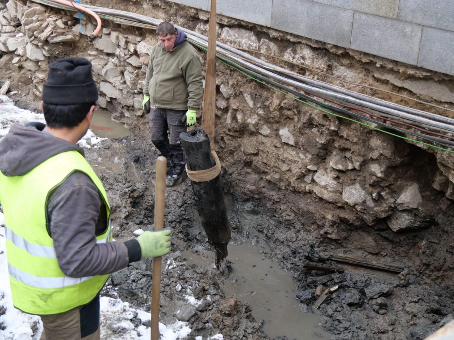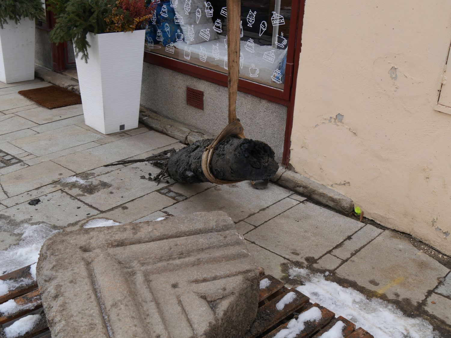 Ve stejný den také z výkopu u radnice vytáhli dřevěnou trubku barokního vodovodu (o objevu vodovodu jsme informovali včera).