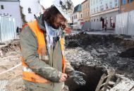 Kousek vedle studny odborníci objevili nejspíš základy pranýře. „Jsme si tím jistí na devadesát procent,“ podotýká Kochan s tím, že jde o zděnou kruhovou stavbu o průměru asi 2,5 metru. Ve středověkých městech pranýř býval na frekventovaných místech jako třeba před kostelem nebo radnicí.