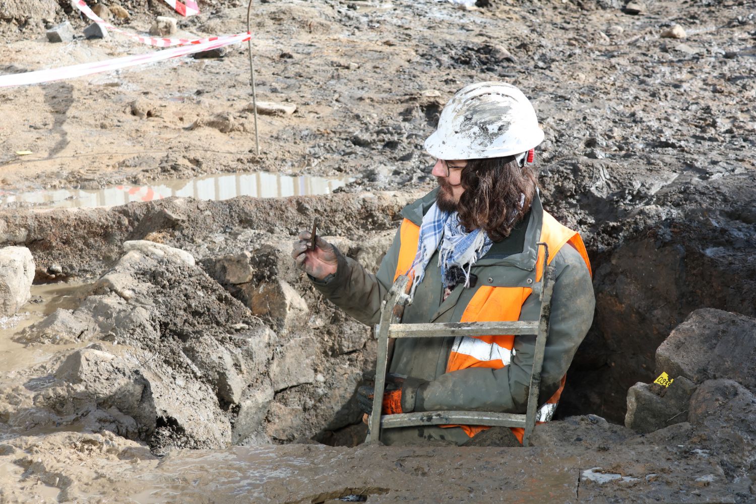 Záchranný archeologický výzkum v současné době probíhá před kostelem – v místě, kde má být akumulační nádrž. Minulý týden archeologové ve výkopu objevili studnu a nyní se jí prokopali zhruba do třímetrové hloubky. Problém jim činí vysoká hladina spodní vody, takže ji musejí průběžně odčerpávat. Na jejím dně zatím ještě nejsou, ale nálezů už mají řadu jako například velký gotický klíč, nůž nebo tesařský poříz zvaný skoble, kterých se ze středověku mnoho nedochovalo, jde o výjimečný nález. „Díky vysoké hladině vody, a tedy bez přístupu vzduchu, se ve studni dochovala i spousta dřevěných úlomků a kožených zbytků. Našli jsme například zlomky dřevěných skládaných misek se vsazovaným dnem, pro představu něco jako malá vědra, které bývaly ve středověku spotřebním zbožím, úlomek soustružené nádoby či dřevěnou lžičku. Z bahna jsme vytáhli i kožený zbytek podešve boty, na kterém je dodnes patrný tvar a dírkování v místě, kde byla bota sešitá,“ popisuje nálezy archeolog Šimon Kochan. Zajímavým kouskem je i úlomek dřevěného počitadla – prostá tyčka se zářezy. Běžní lidé ve středověku nebyli gramotní, takže jim počitadla pomáhala třeba při běžném nákupu a prodeji zboží nebo v případě, kdy měli splácet nějaký dluh a podobně. „Od té doby se říká: Máš u mě vroubek,“ dodává Kochan.