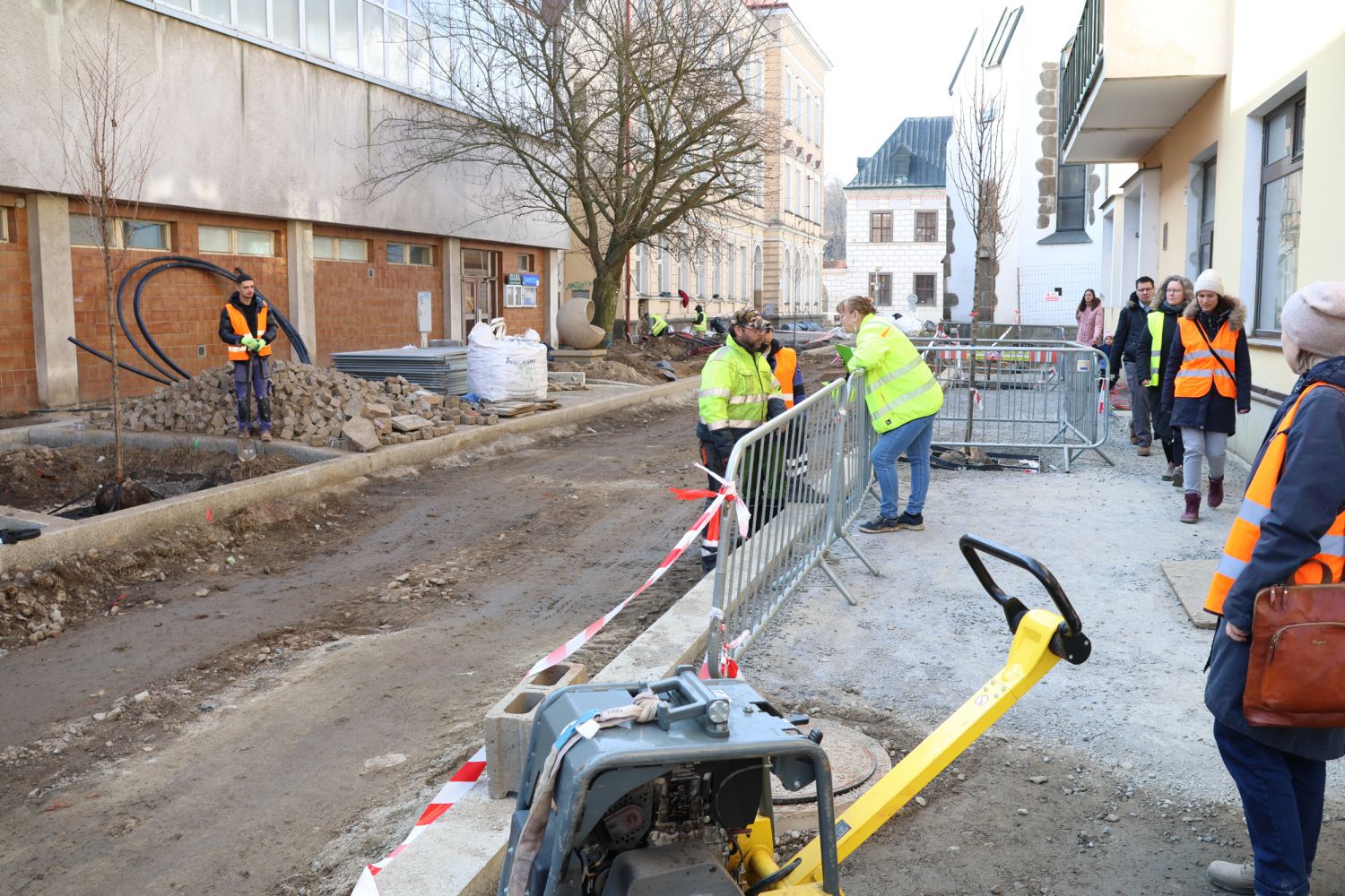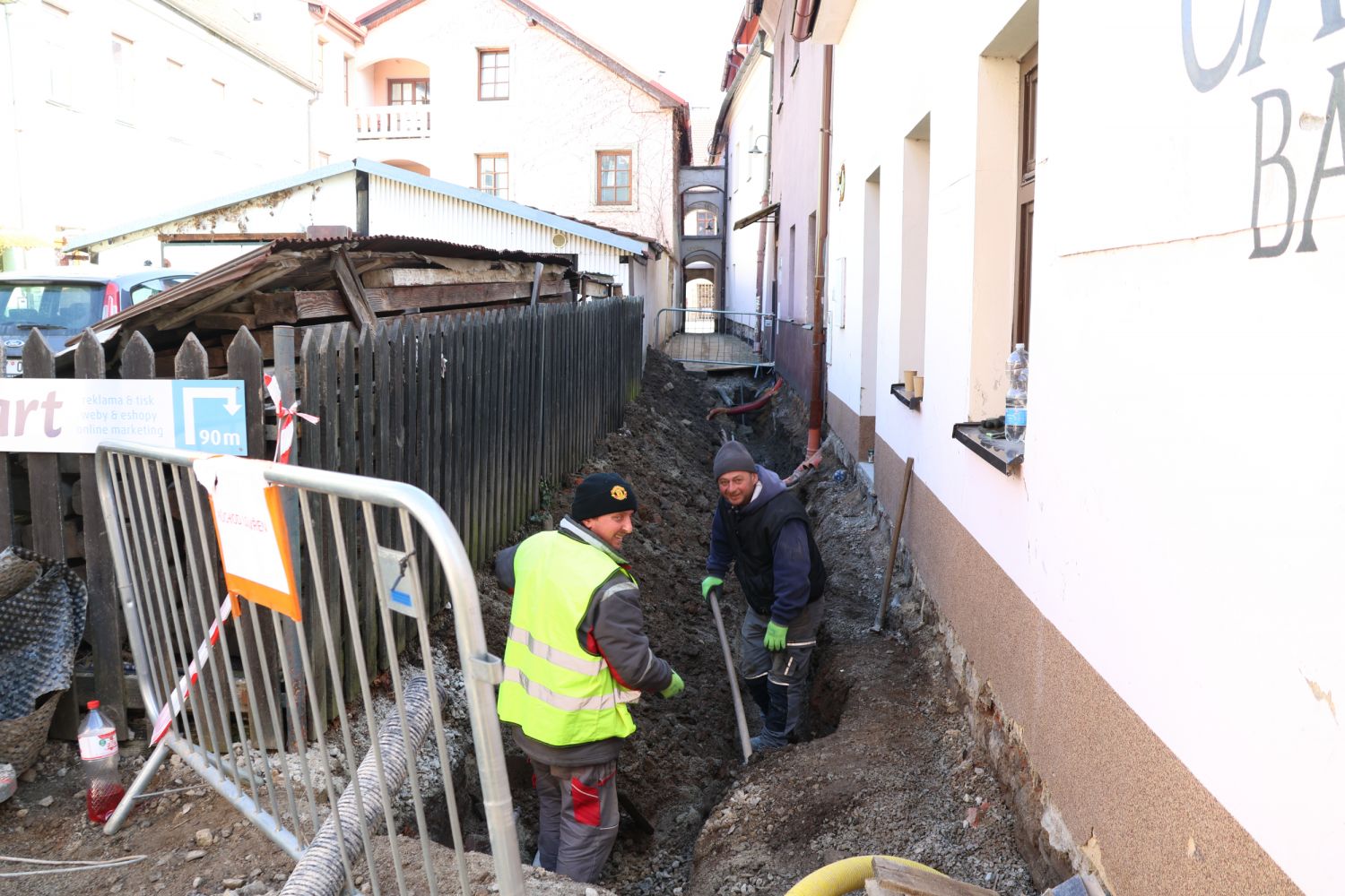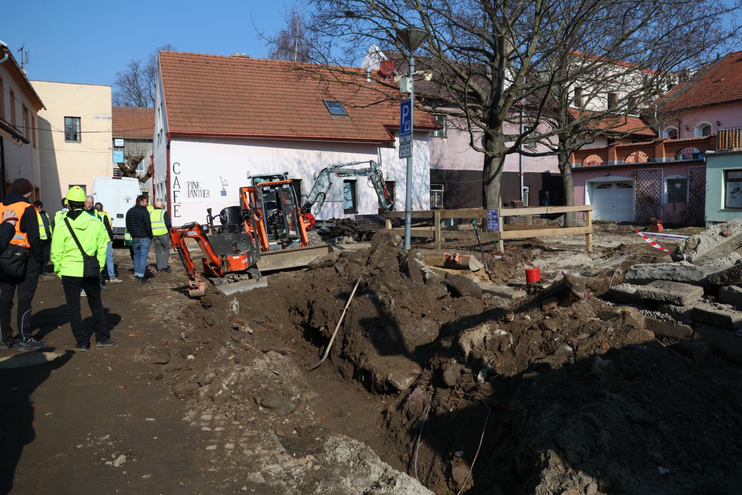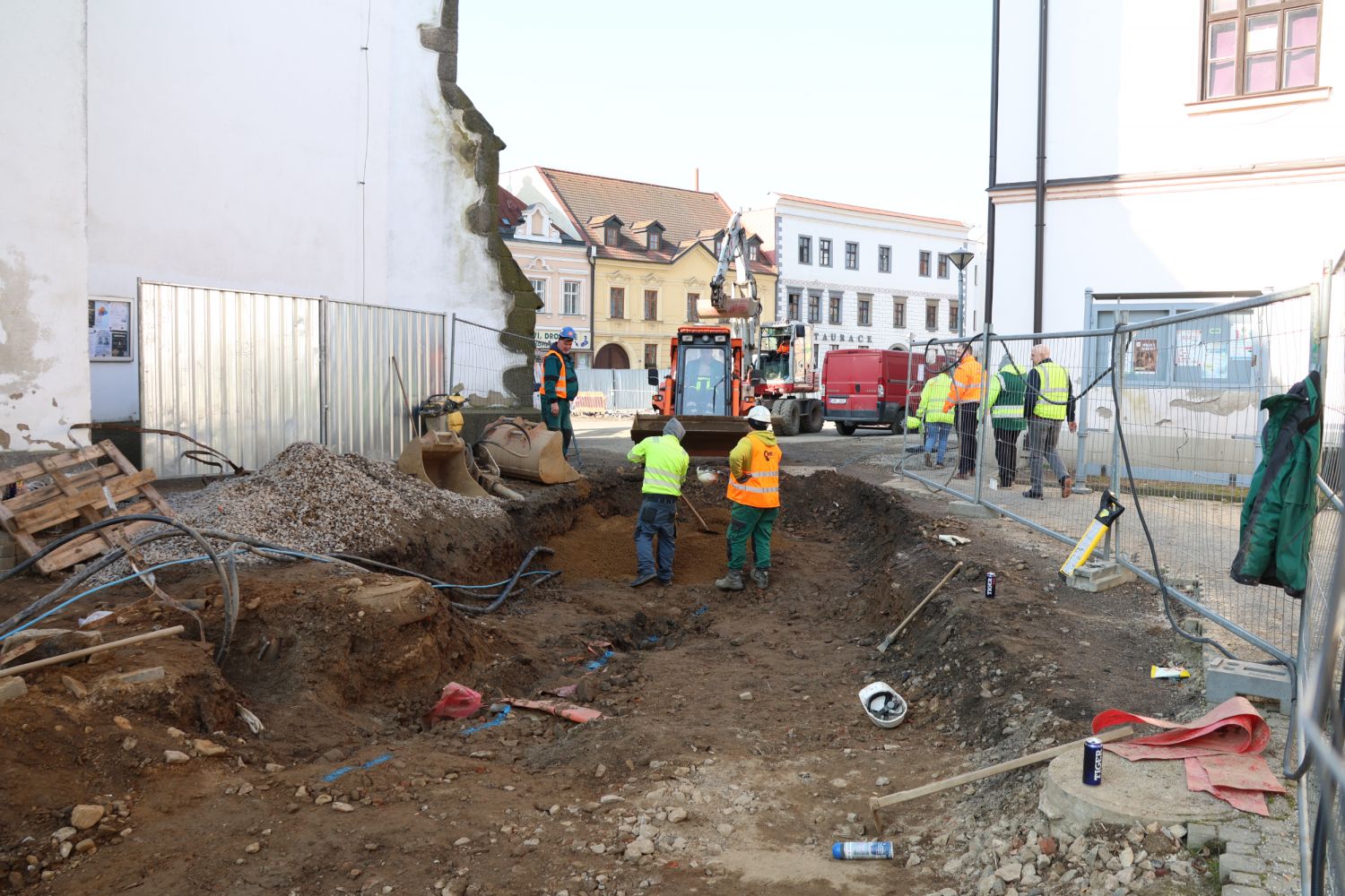Stavba kanalizace v dolní části náměstí se blíží k závěru. Pokládka inženýrských sítí pokračuje také na Rozkoši a ve Fortně, práce probíhají i v okolí kostela.