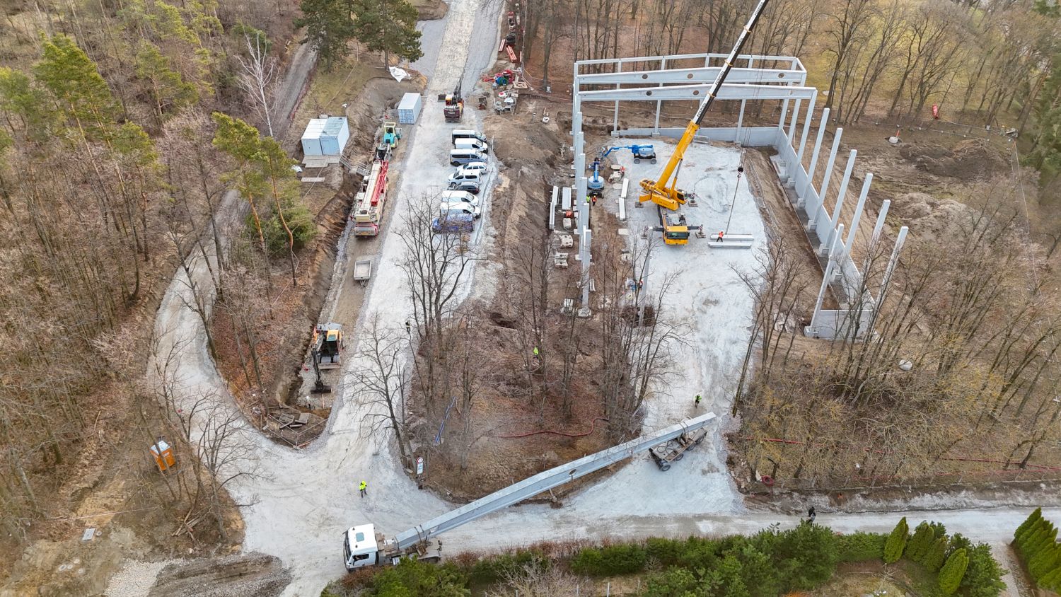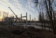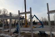 Stavba nové sportovní haly pokračuje výrazným tempem. Na začátku března zahájila stavební firma Building centrum HSV montáž železobetonového skeletu, který postupně dává budově její tvar.