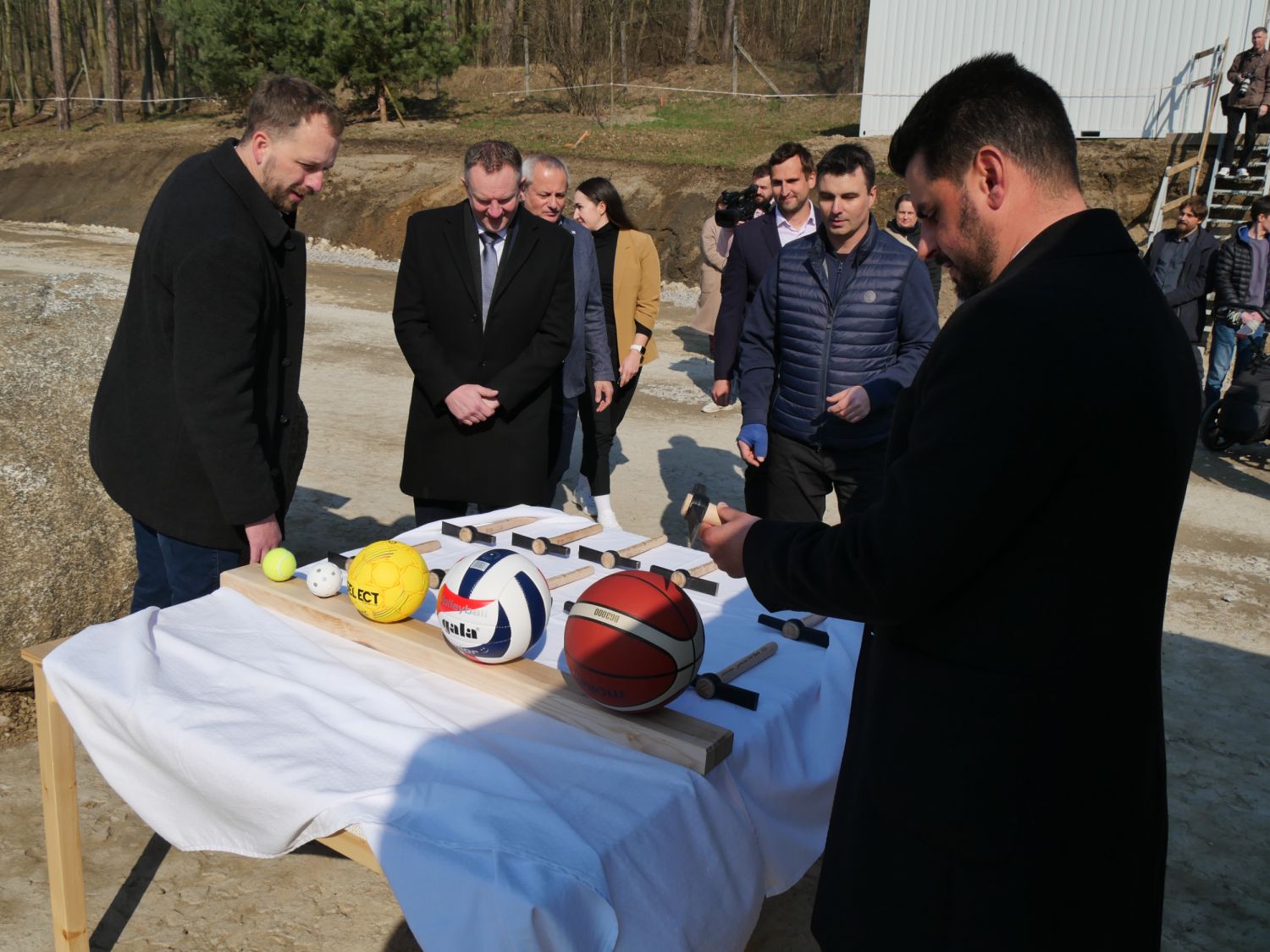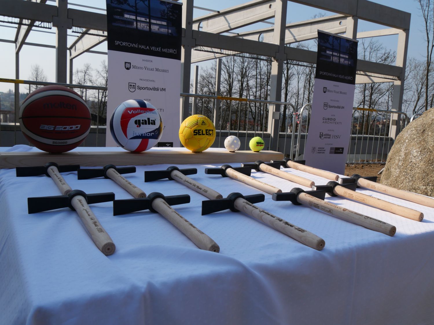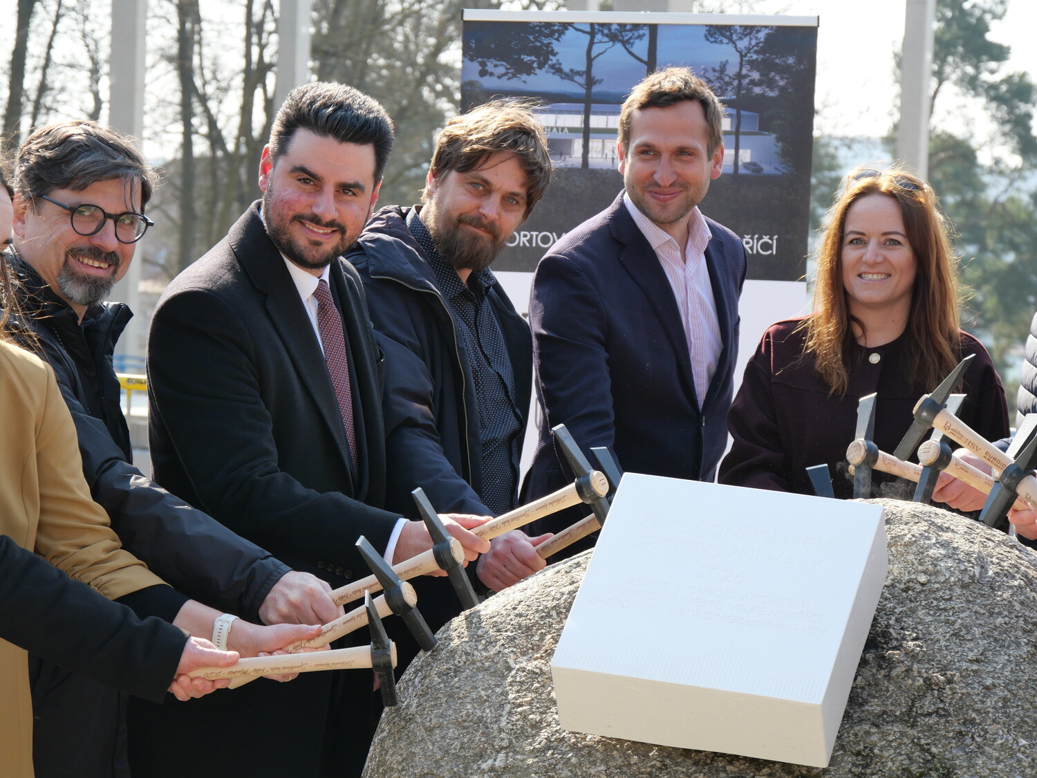 Pak už došlo na samotné poklepání základního kamene s pamětní deskou a na stavbě se znovu rozvinul čilý pracovní ruch. Stavba haly má být dokončena v polovině příštího roku.