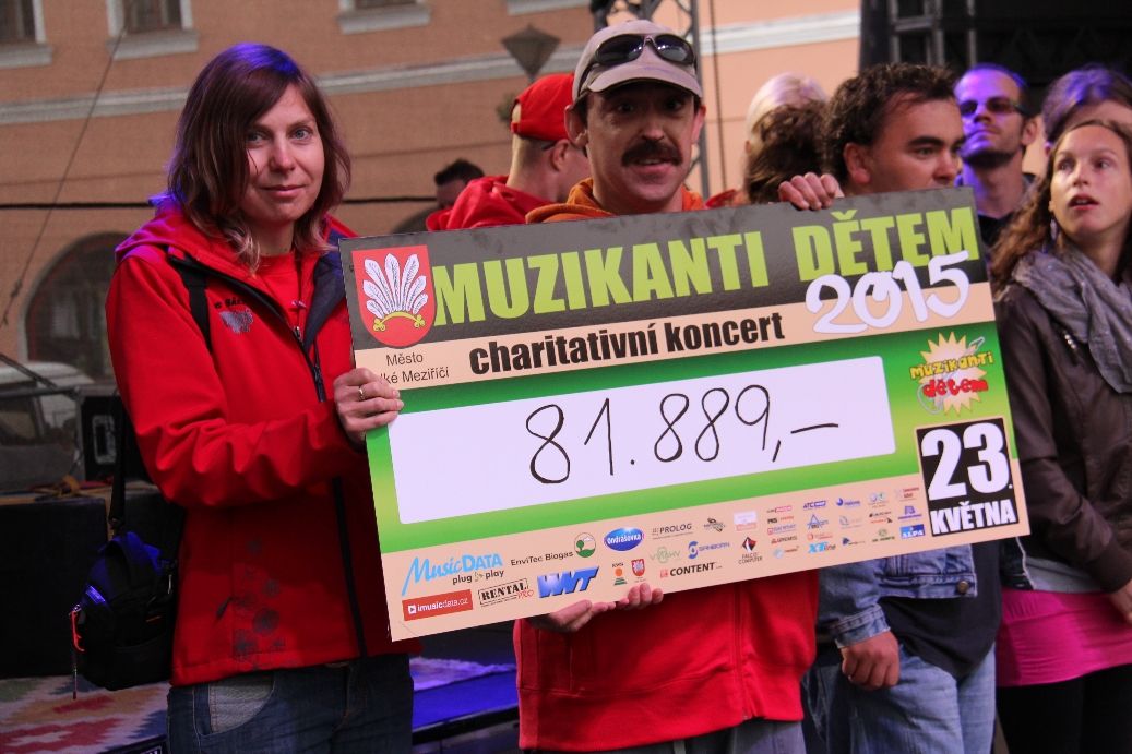 Devátý ročník charitativní akce Muzikanti dětem nabídl vystoupení hostů i domácích kapel. Během sobotního odpoledne 23. května se na pódiu vystřídaly skupiny Voxel, orchestr a sbor základní umělecké školy, který patří mezi osvědčené účinkující, Crazy Team, UDG, muzikálové vystoupení Mamma Mia, My Sami, Find Your Destiny a China Blue. Jejich koncert si lidé užili, i když většinu času po deštníky. Nicméně počasí je v účasti ani štědrosti příliš neovlivnilo a pořadatelé díky nim mohli předat březejckým sportovcům sto deset tisíc korun. „Letos nám počasí nepřálo extrémně, ale i přes to přišlo hodně lidí a za organizátory mohu říct, že jsme s částkou spokojeni," sdělil za pořadatele akce Radovan Hajný. Její výše je podle něj bez ohledu na počasí poměrně stabilní, stejně jako okruh sponzorů. „Máme stálé partnery, kterých si velmi vážíme, a jsme rádi za každého nového," zhodnotil Hajný s tím, že i publikum má o této již tradiční akci povědomí, ví, o čem to je. Pořadatelé se je snaží přitáhnout na známá jména. S těmi to není úplně jednoduché. Mnohé kapely totiž charitu vůbec nedělají, jiné ano, ale úplně zadarmo většinou také nezahrají. Šanci dostávají i začínající velkomeziříčské skupiny. „Jsme za ně rádi a třeba zrovna letos jsme byli jejich úrovní mile překvapeni," dodal Hajný.