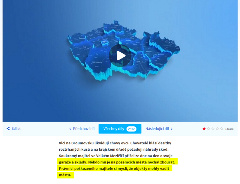 Česká televize totiž uvedla: "Za akcí stojí zřejmě město, které chce na pozemcích postavit obchodní centrum a nerespektovalo věcné břemeno." Proti tomuto tvrzení se město včera ohradilo a dnes tato slova z webu České televize zmizela.