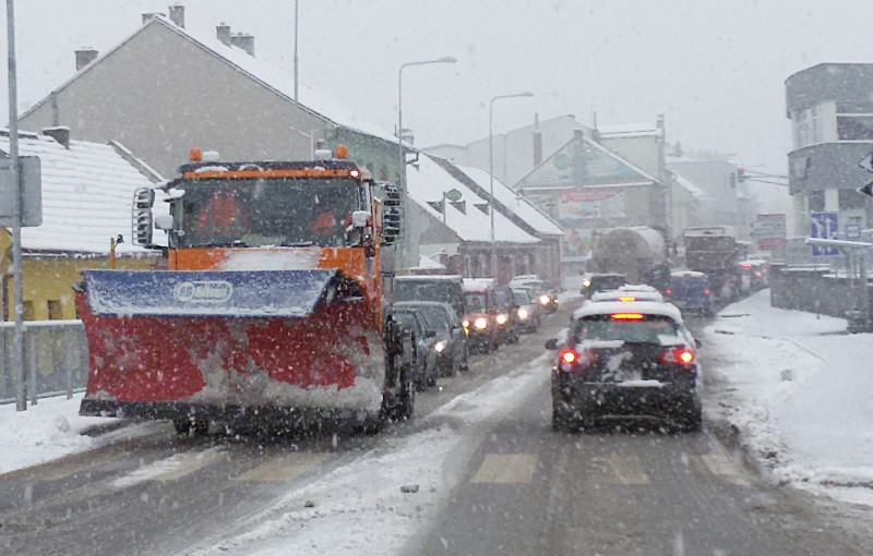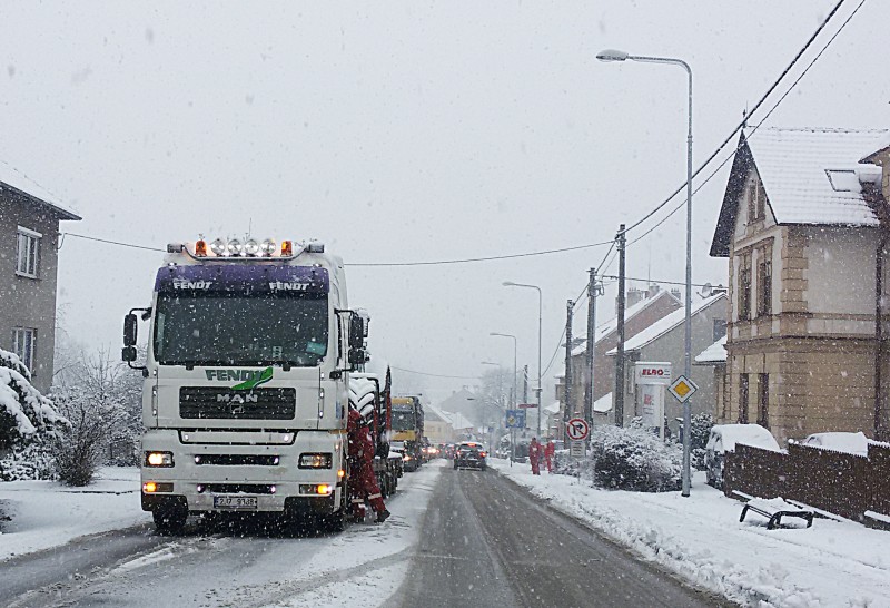 Na Vysočině sněží od úterních nočních hodin. I ve Velkém Meziříčí napadlo více než deset centimetrů mokrého sněhu. Hlavní tahy jsou sice prohrnuté, ale třeba na Karlově či v ulici K Novému nádraží pod viaduktem směrem na obchvat ráno dopravu blokovaly kamiony, které klouzaly a nemohly vyjet do kopce. Za nimi se tvořila kolona dalších vozidel, která popojížděla dlouhé minuty.