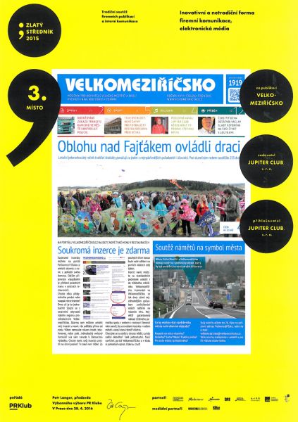 Velkomeziříčsko dostalo ocenění Zlatý středník prakticky přesně po roce své existence. V kategorii Inovativní a netradiční forma firemní komunikace, elektronická média bylo zařazeno zejména proto, že Velkomeziříčsko dnes tvoří tři základní média. Prvním z nich je rozsáhlý webový portál Velkomeziricsko.cz, jehož těžiště tvoří zpravodajství z města a místních částí. Spuštěn byl v červnu roku 2015 a do dnešního dne (30. dubna 2016) publikoval 1850 článků (tedy zhruba 5 denně), z drtivé většiny původních redakčních zpráv. Na web navazuje facebooková stránka Velkomeziříčsko s 478 aktuálními odběrateli.