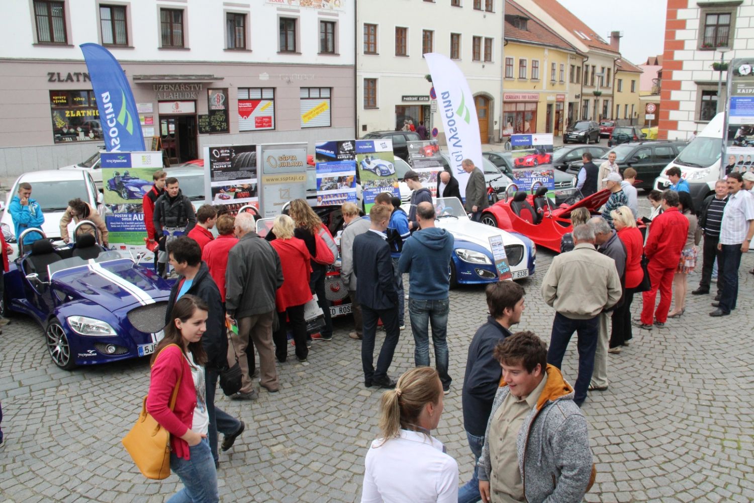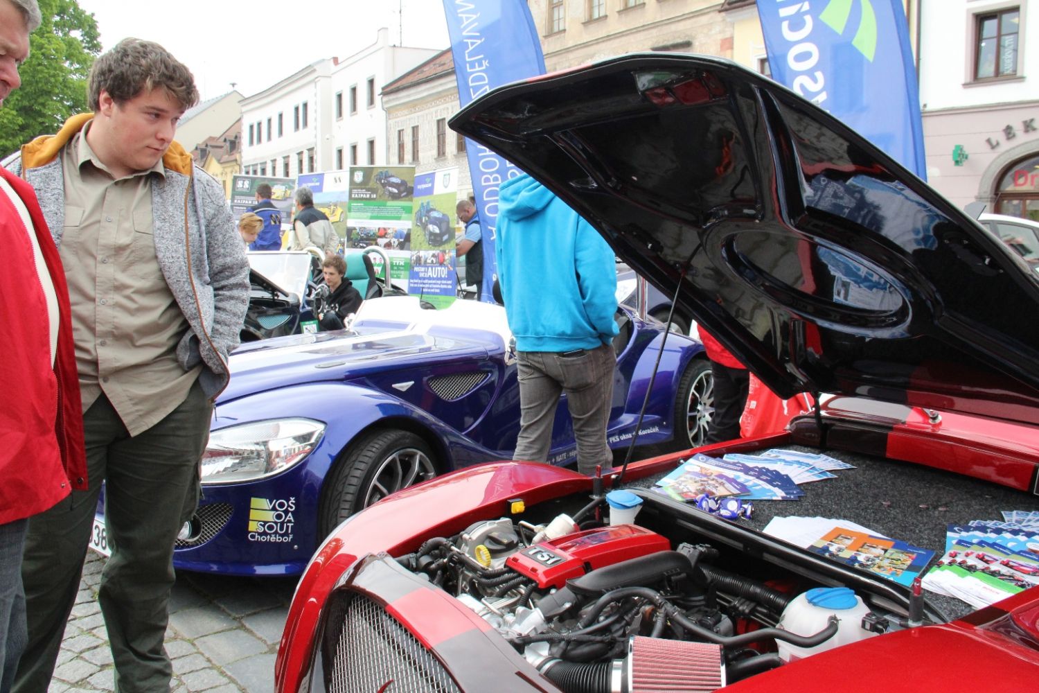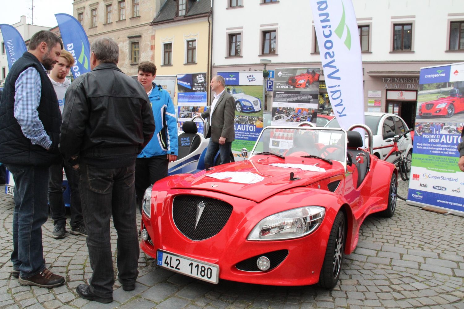 Přehlídka sportovních aut středních škol Kraje Vysočina dorazila i na náměstí ve Velkém Meziříčí.