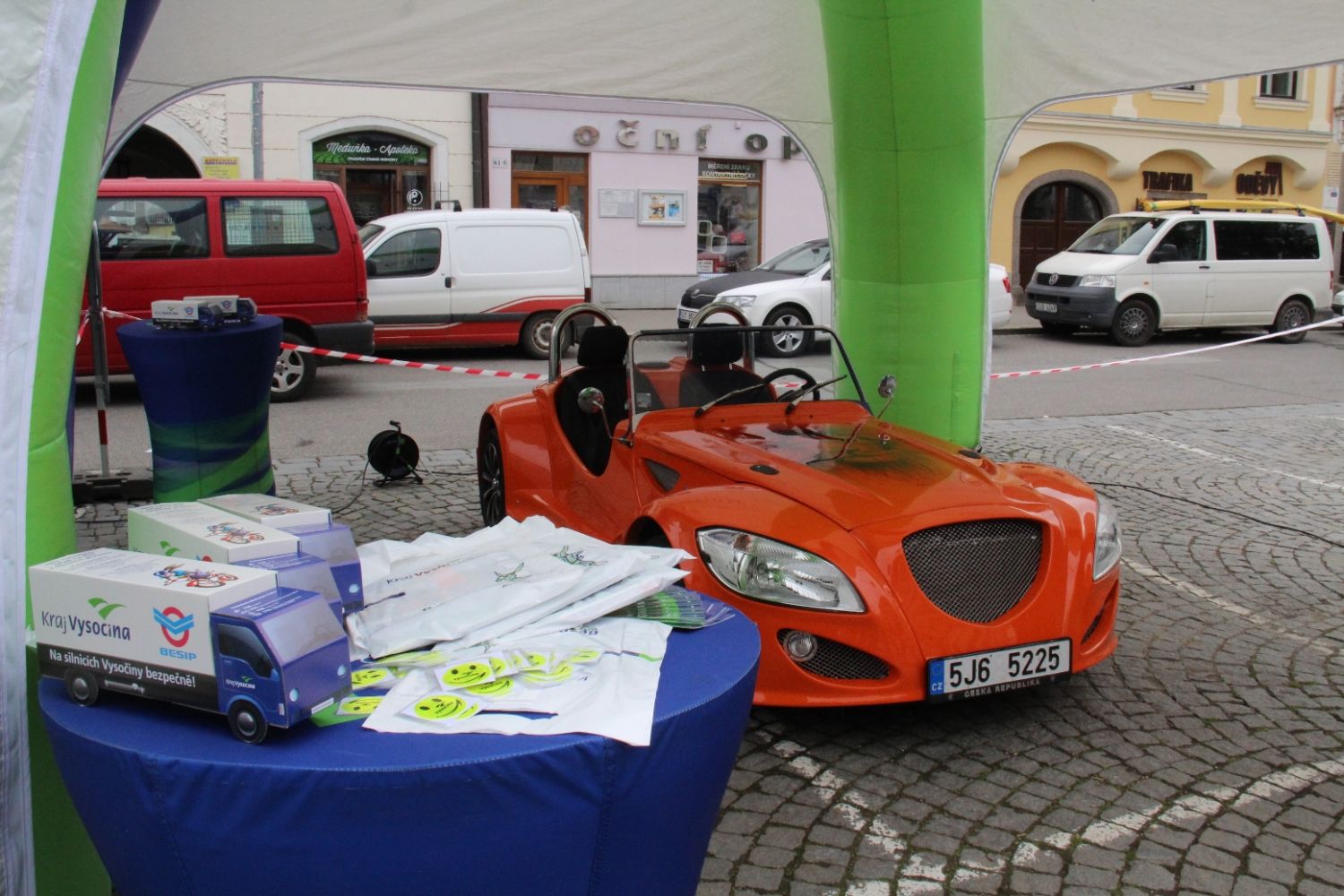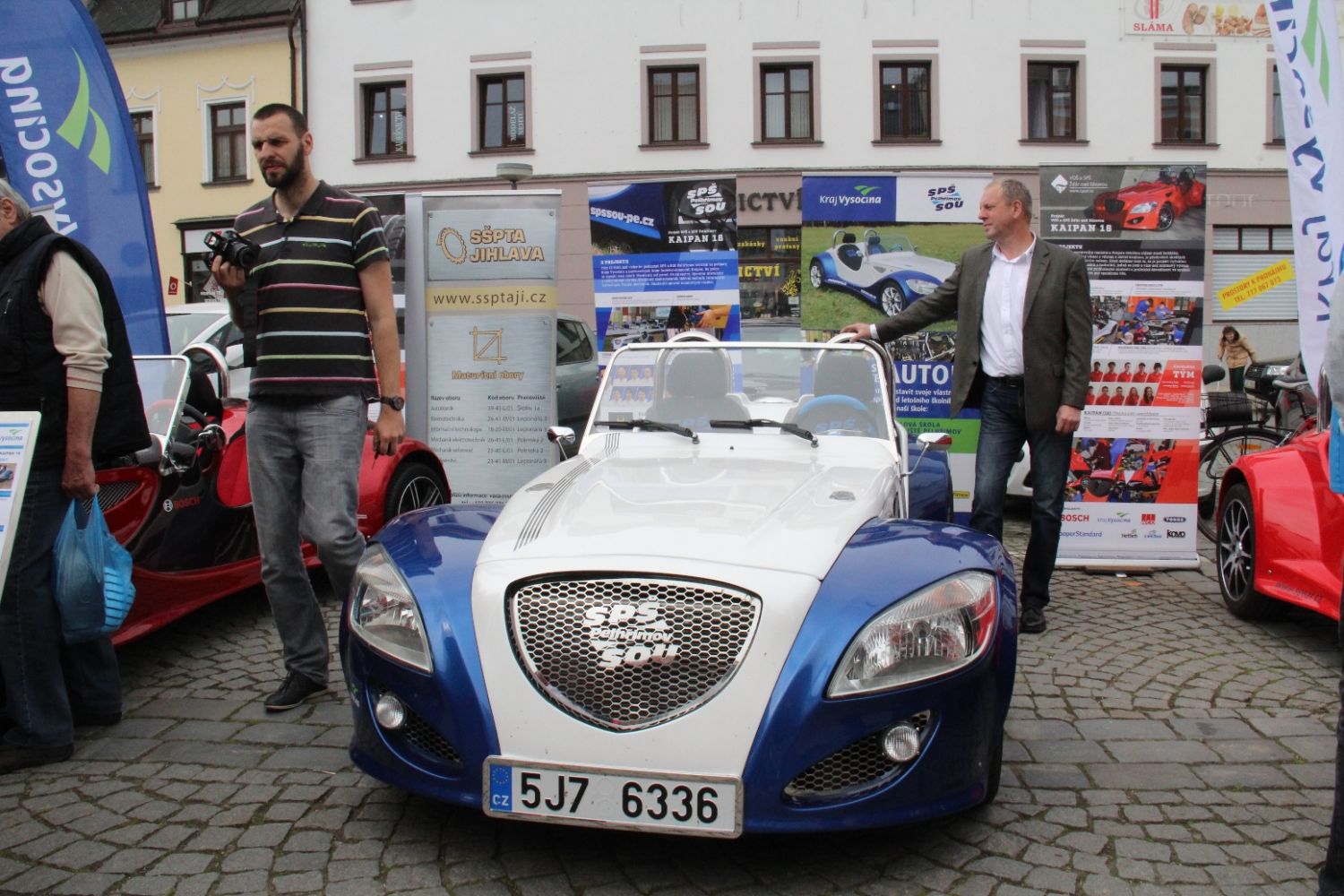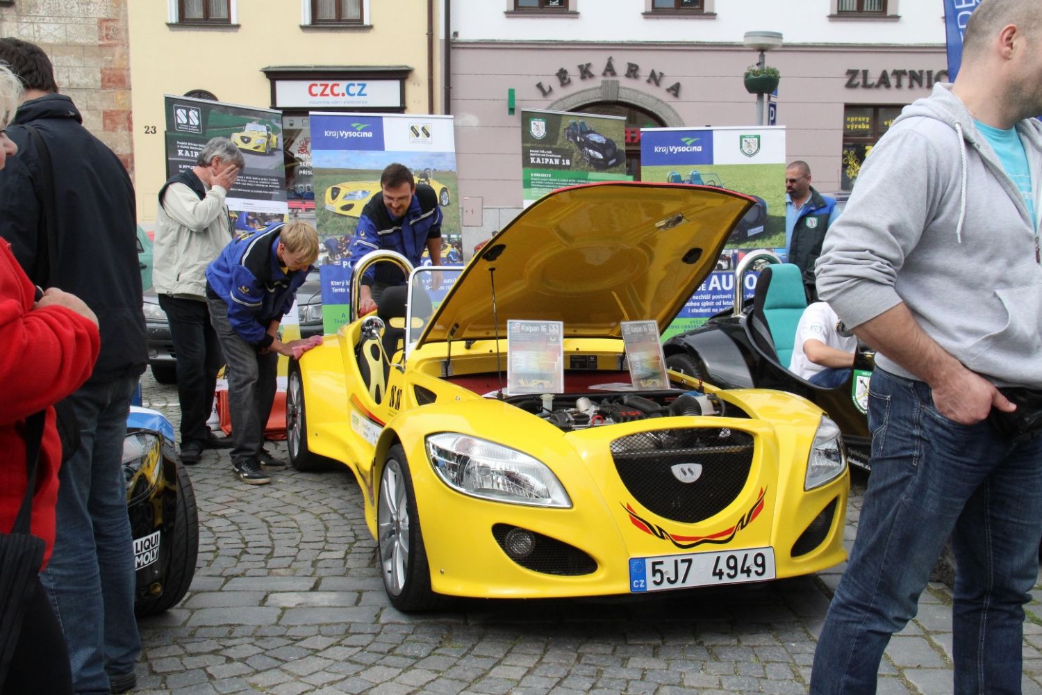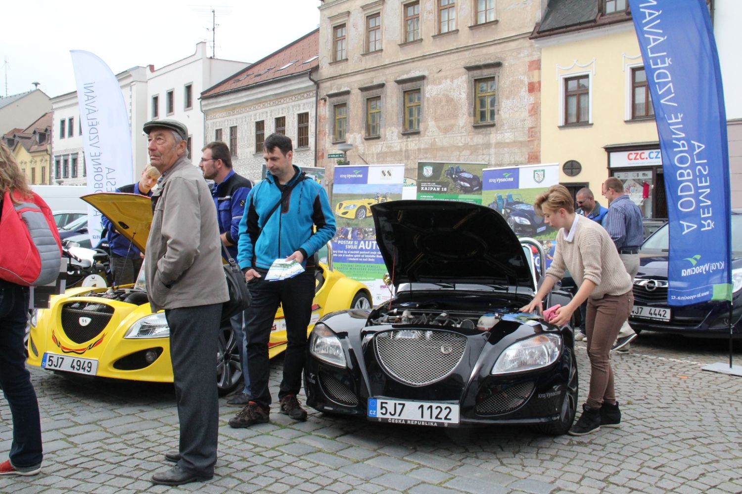 Přehlídka sportovních aut středních škol Kraje Vysočina dorazila i na náměstí ve Velkém Meziříčí.