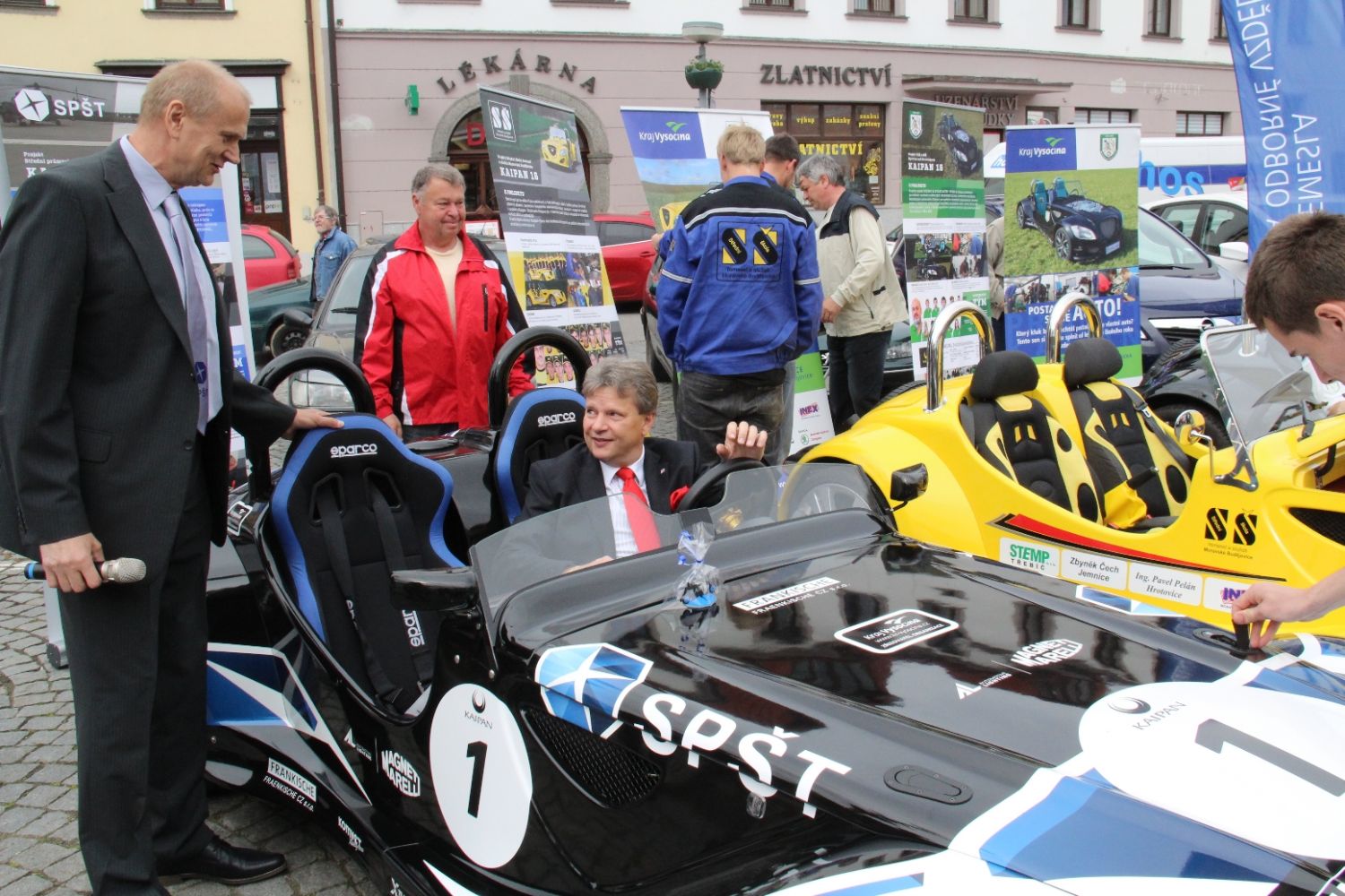 V rámci týdne Spanilých jízd se zde prezentovaly nejen vozy, ale i konstrukční týmy, které se zapojily do krajského studentského projektu Postav si svoje auto.