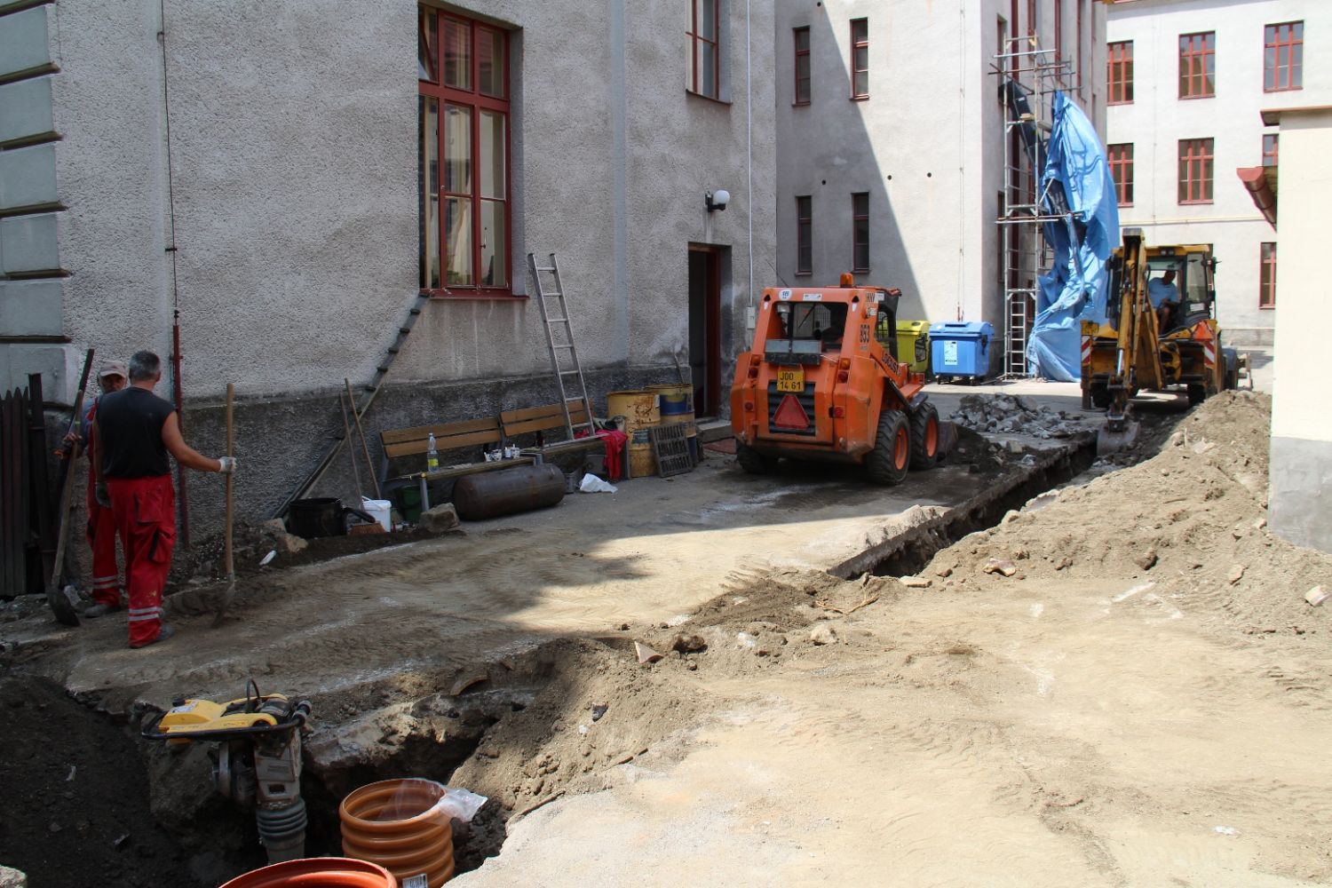 Na gymnáziu ve Velkém Meziříčí se během prázdnin staví ostošest. Kraj Vysočina zde realizuje rovnou tři investiční akce naráz, a to opravu sociálních zařízení, rekonstrukci kanalizační přípojky a výstavbu hřiště za školou. Studentům díky tomu začalo letní volno o týden dřív.