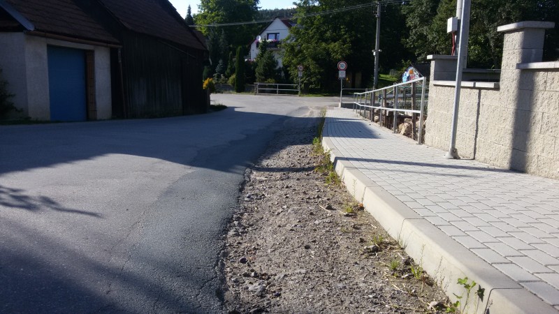 V Dolních Radslavicích se připravuje oprava pásu silnice podél nového chodníku, v zatáčce od křižovatky směrem na Březejc.