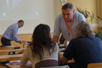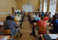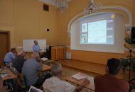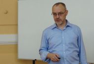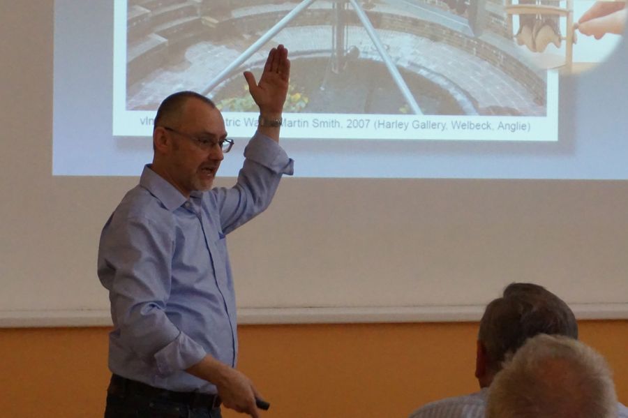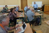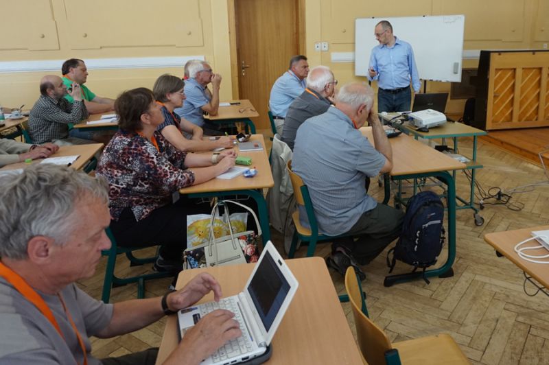 Aleš Trojánek v přestávce mezi přednáškami mluví s účastníky semináře.