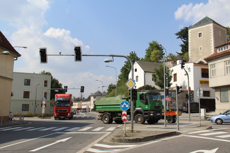 Doprava Ve Velkém Meziříčí je v těchto dnech mimořádně komplikovaná. Kvůli přestavbě kruhového objezdu je uzavřena ulice Třebíčská a všechna auta tak směrem na Třebíč musí projet po Novosadech na obchvat města, právě tedy křižovatkou s porouchanými semafory.