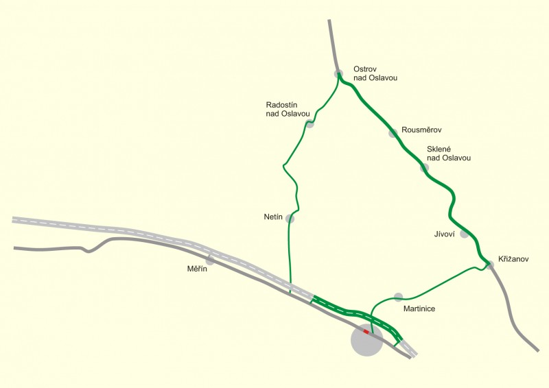 Nákladní auta nad 3,5 tuny mají objížďku stanovenu přes okolní obce a rovněž mohou využít dálnici D1 mezi exitem 141 Velké Meziříčí západ a exitem 146 Velké Meziříčí východ, z něhož se vozidla nad 3,5 tuny dostanou na silnici II/360 směr Křižanov a Třebíč. "Přechodné dopravní značení bude doplněno tak, aby byla důsledněji eliminována nákladní doprava nad 3,5 tuny z prostoru staveniště a dále aby z objízdné trasy vozidla nesjížděla do Čechových sadů a držela se na trase," uvedl Pospíchal.