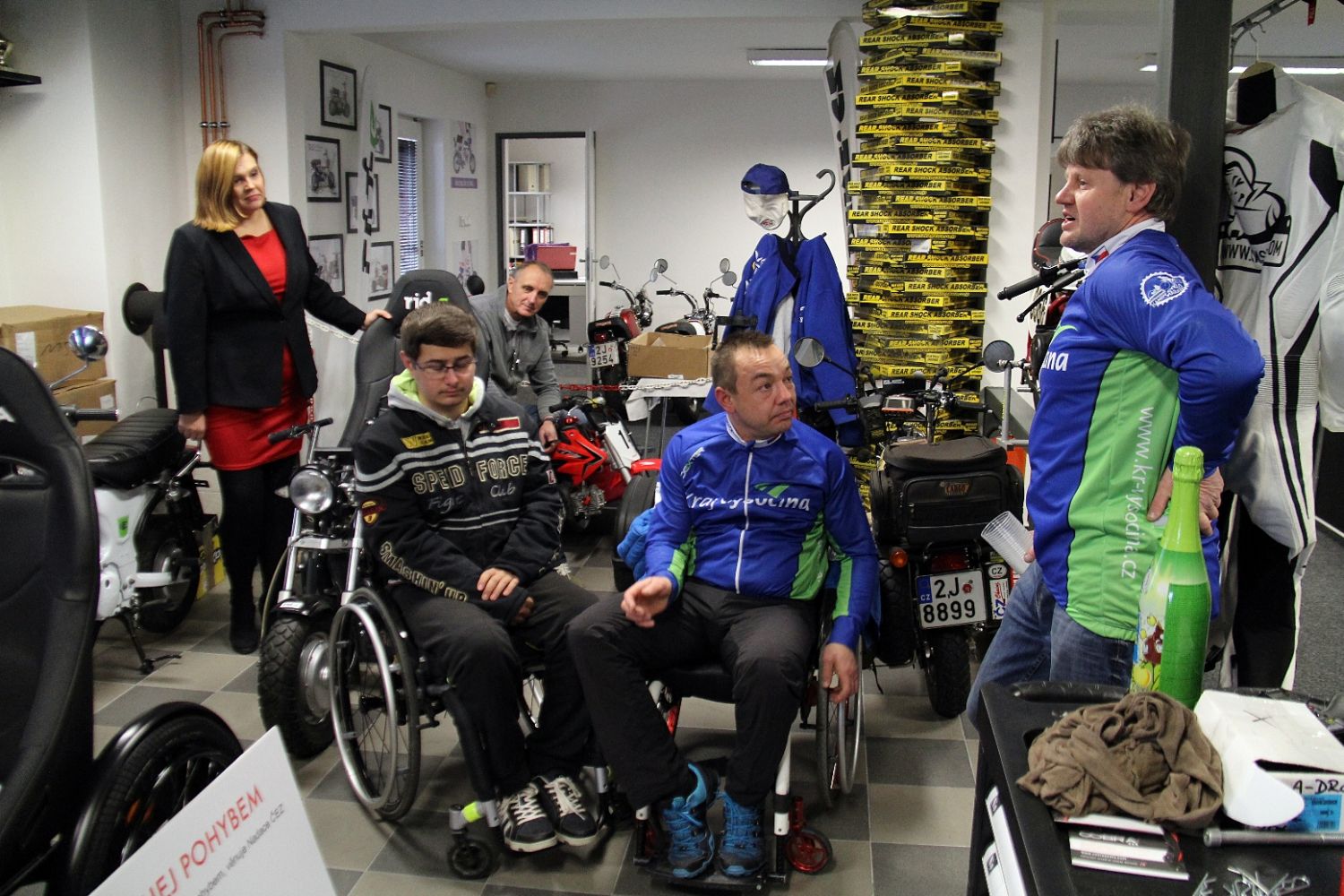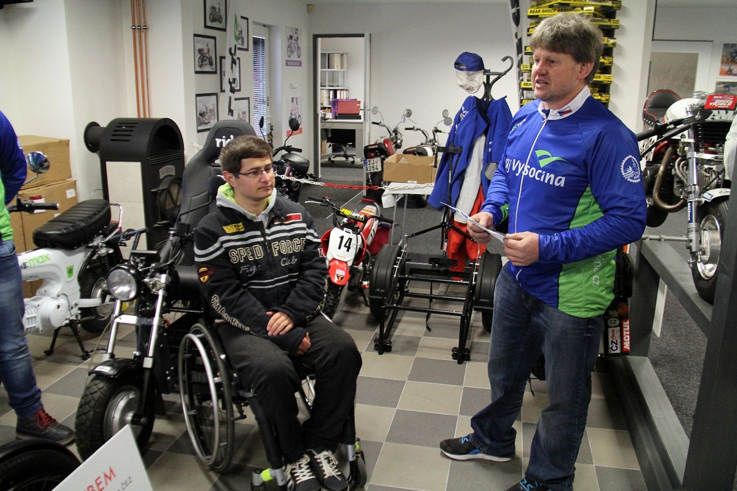 Elektrický vozík Rid-e, který Stanislav Hájek převzal, je z dílny velkomeziříčského motocyklového závodníka Iva Kaštana. Ten vozík sám vymyslel. „Vyvíjeli jsme ho asi rok a půl a teď už ho dva roky prodáváme, blížíme se zhruba k padesátce prodaných kusů,“ informuje Ivo Kaštan, který vozíky také sám staví, pouze s elektrickými rozvody mu pomáhá brigádník. „Je to pracné, čeká se na něj osm týdnů, ale má to ty nejlepší komponenty. Je to český výrobek. S těmito parametry ho nikdo jiný na světě nevyrábí. U nás se z 99 procent prodávají nekvalitní výrobky z Číny.“ Výhodou vozíku – tříkolky – je podle něj hlavně to, že je to regulérní dopravní prostředek pro invalidy, seniory, vlastně pro kohokoli. „Můžete s tím do silničního provozu, na chodník, na cyklostezku, i třeba do Kauflandu, do přírody a nepotřebujete řidičské oprávnění ani povinné pojištění,“ uzavírá Kaštan.
