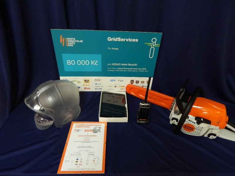 Ocenění převzali ve středu 16. listopadu v brněnské Laser Show Hall. „Ocenění předával za HZS ČR brigádní generálmajor Drahoslav Ryba. Zástupce jednotky Miroslav Jágrik převzal šek v hodnotě 80.000 korun, motorovou pilu, tablet a profesionální vysílačku. Za ocenění poděkoval městu Velké Meziříčí, krajskému sdružení hasičů ČMS, Hasičskému záchrannému sboru, pro podporu jednotky a všem, kteří poslali svůj hlas,“ řekl starosta velkomeziříčských dobrovolných hasičů Stanislav Kratochvíl a dodal: „Veškeré vyhrané finance a materiál použijeme do nového zásahového vozidla CAS 20, který naše jednotka převezme koncem roku.“