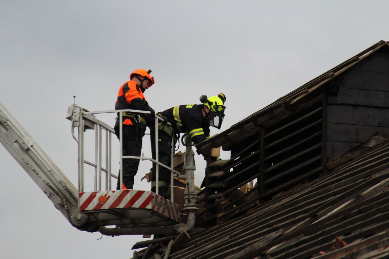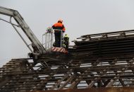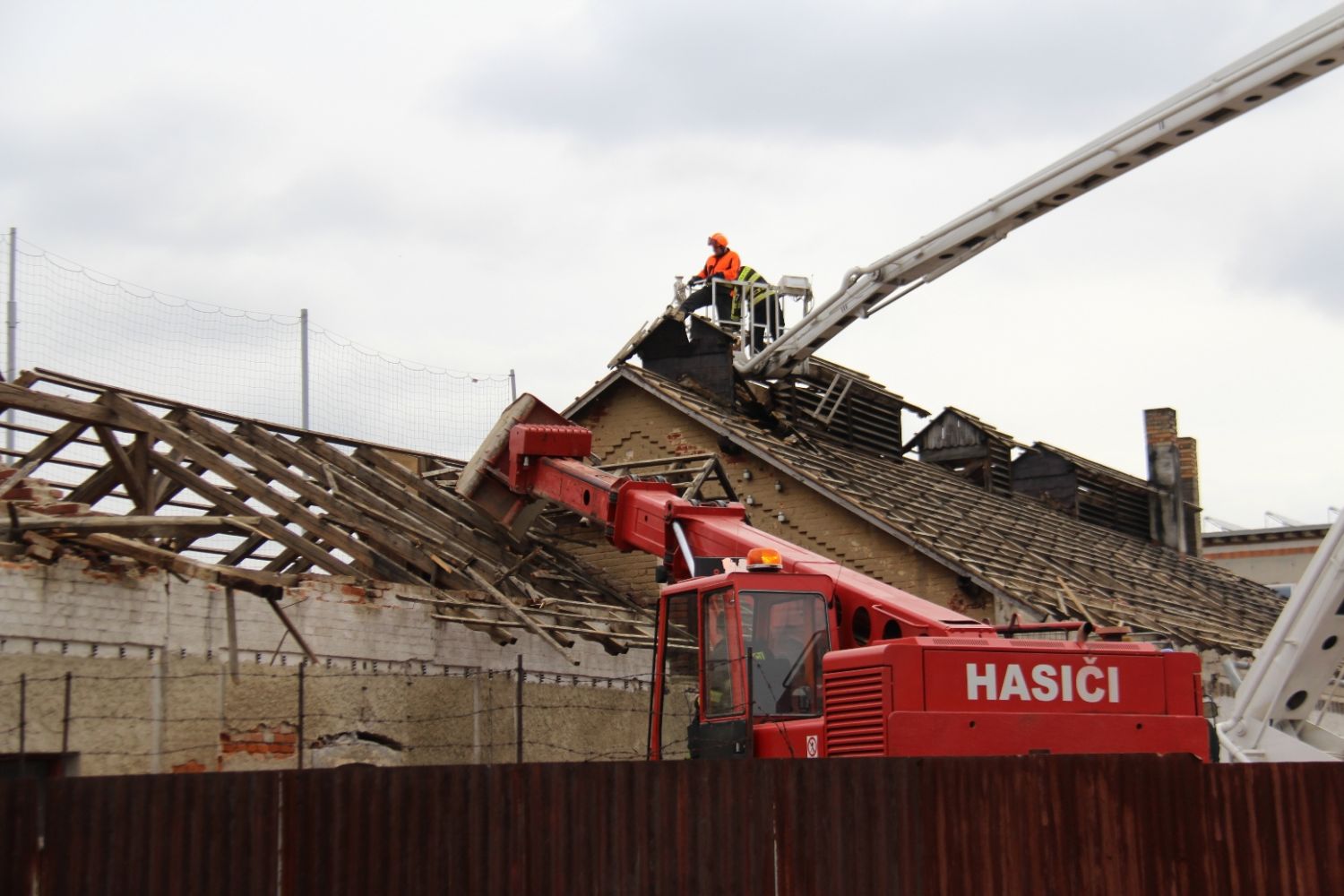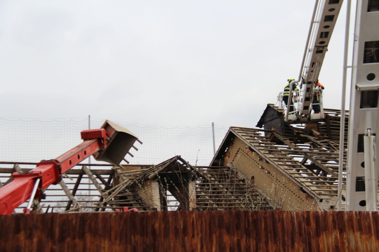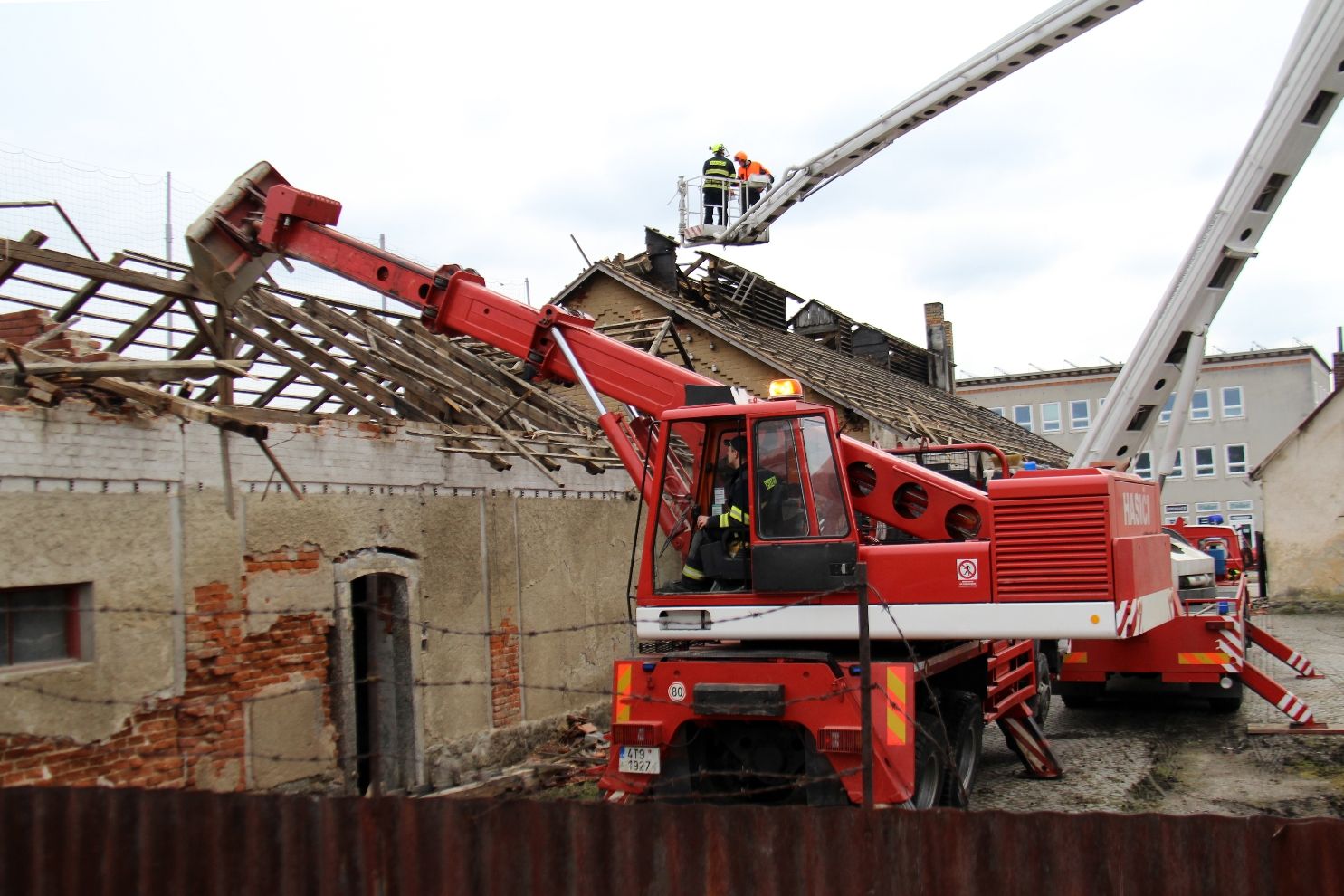 Tašky ze střechy jatek už sundali velkomeziříčští dobrovolní hasiči, kteří použijí i některý další materiál z bourání pro svoje potřeby. Například dřevěné trámy ke stavbě hranice na pálení čarodějnic. Další likvidace materiálu proběhne v součinnosti s technickými službami, v jejichž areálu bude garážovaná i těžká technika hasičů jihlavské roty. Asi v polovině dubna by měla být demolice dokončena.