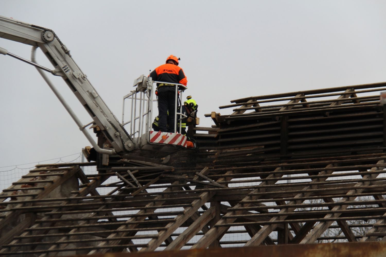 „Během úterý a středy budeme vyřezávat krovy a přitom vlastně proběhne cvičení našich pilařů. Ve čtvrtek a v pátek provedeme částečné stržení budovy a připravíme prostor pro cvičení kynologů, ke kterému dojde v pondělí,“ upřesnil postup prací velitel čety záchranné roty z Jihlavy Stanislav Kratochvíl.