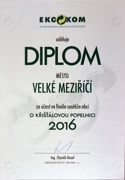Velké Meziříčí je mezi 15 městy České republiky, ve kterých lidé nejlépe třídí odpad. Svědčí o tom výsledky včerejšího vyhlášení celostátní soutěže O křišťálovou popelnici 2016.