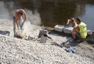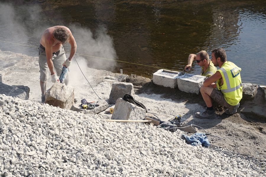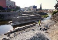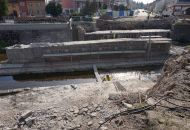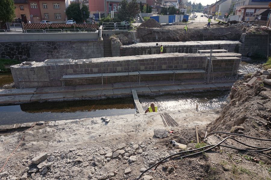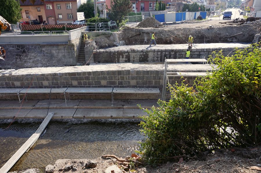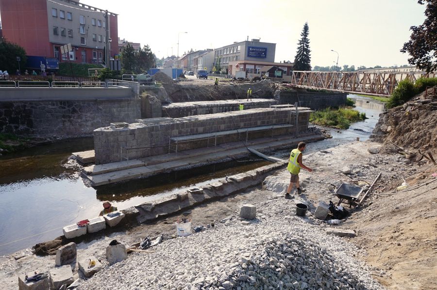 Po demolici mostu, která už je hotová, teď probíhá dozdívání horní části usazení nového mostu na levém a pravém břehu, a také středového pilíře. Poté zhotovitel vybetonuje takzvané úložné prahy, na kterých bude ležet budoucí mostní těleso.