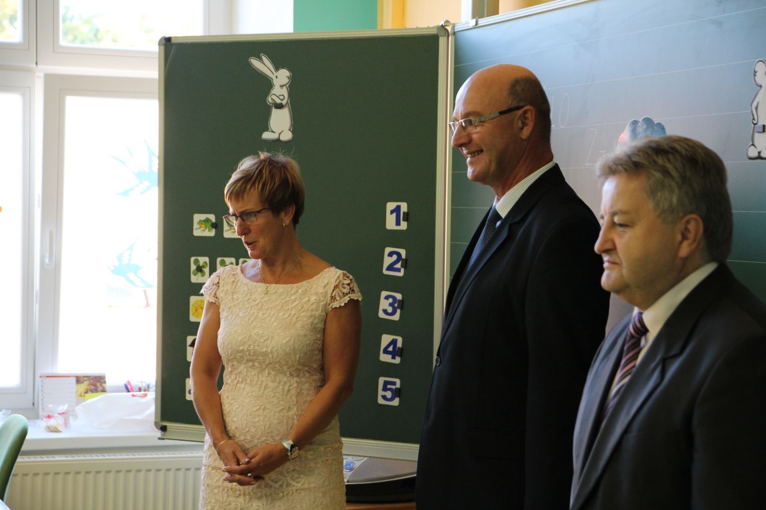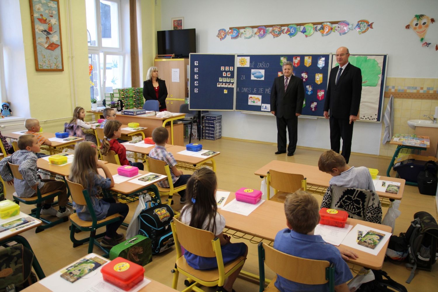 Úspěšný vstup do nového školního roku přišel dětem na ZŠ Komenského popřát místostarosta Josef Komínek. „Ať se vám ve škole líbí. Jsem rád, že Kraj Vysočina na vás ani letos nezapomněl a dal vám opět kufříky, kde najdete něco ke hraní. Já jsem vám přinesl malou sladkost,“ dodal a podaroval děti čokoládovými mincemi.