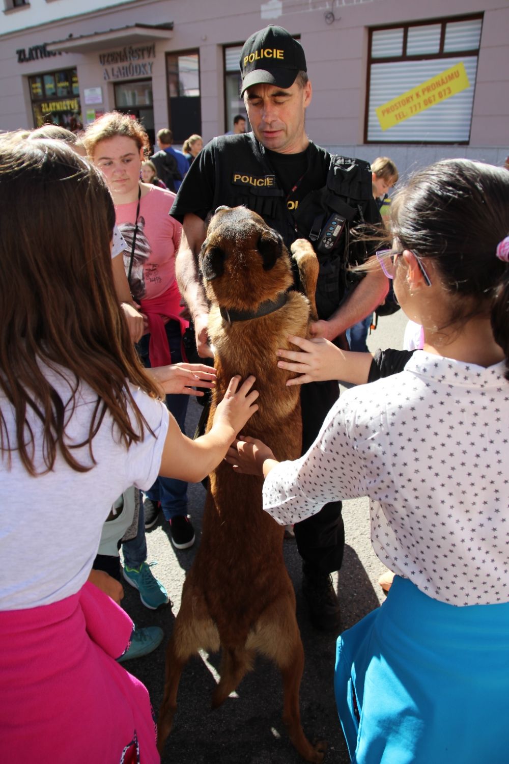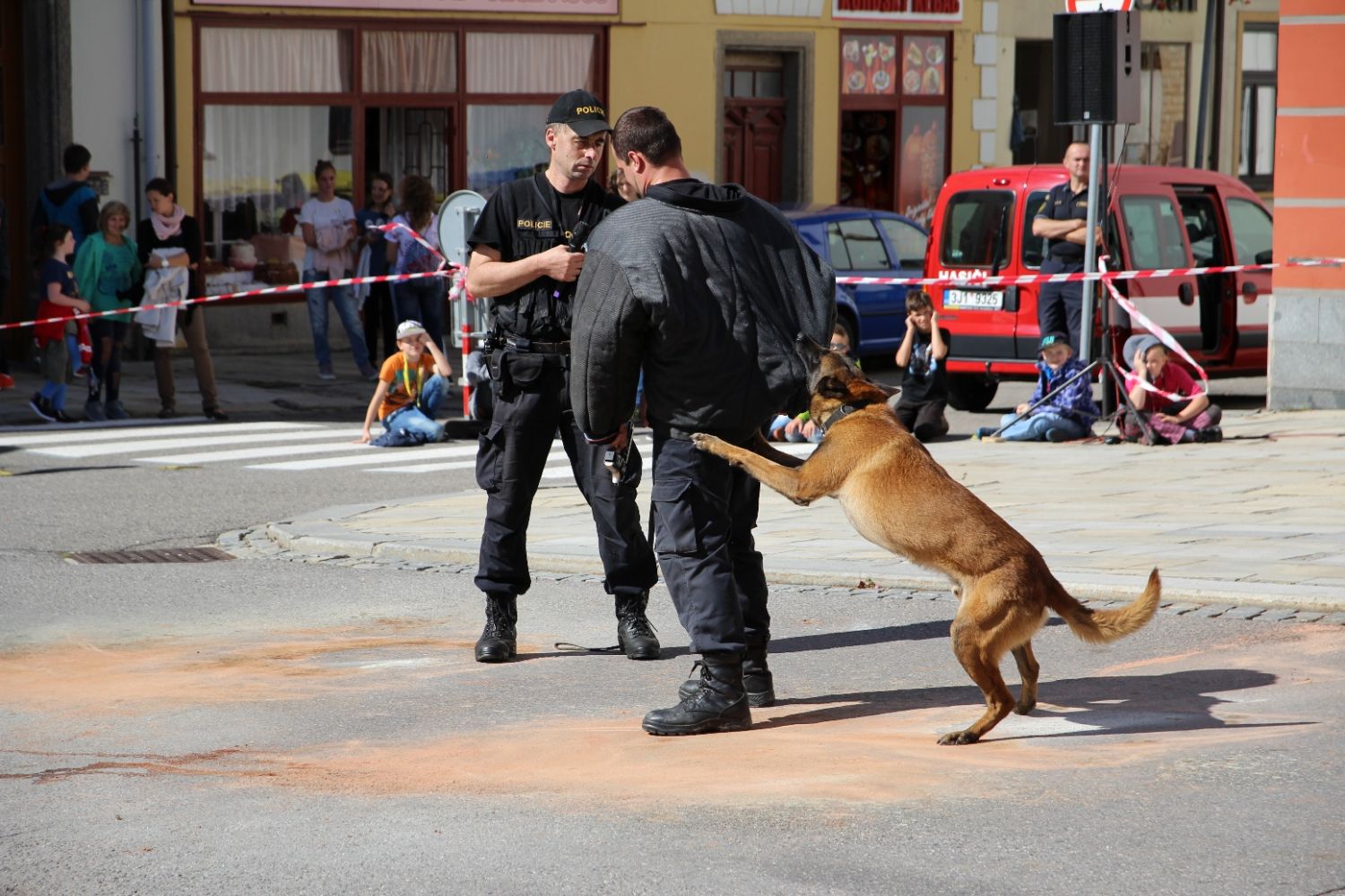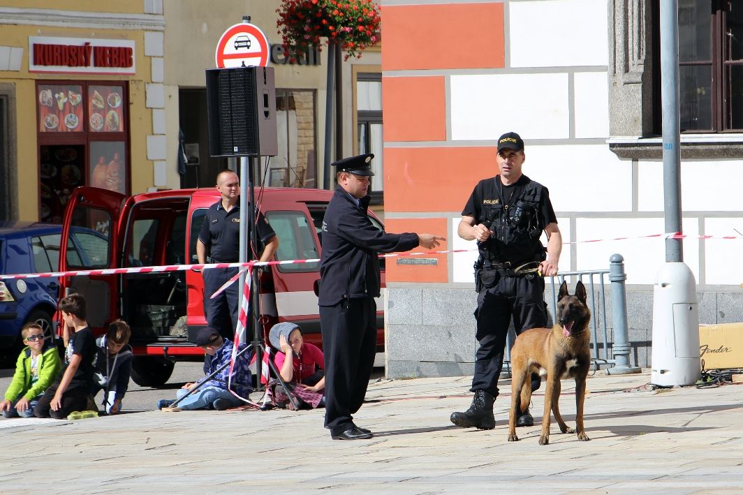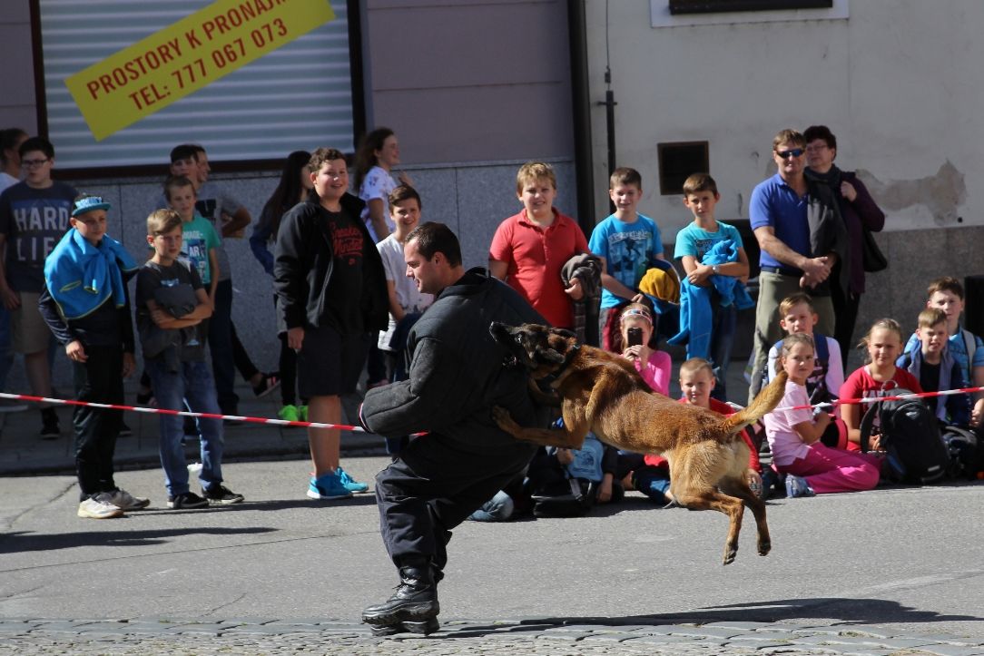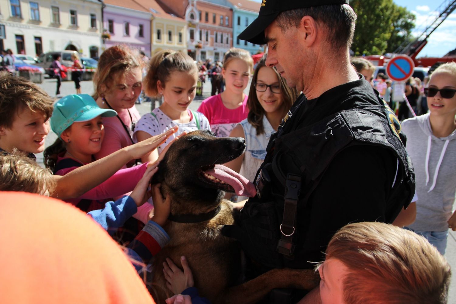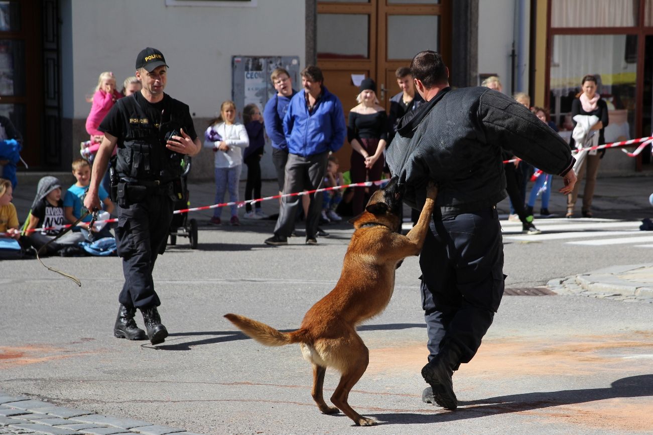 Houkání, blikající majáky a nářek zraněného provázely rychlý zásah zdravotnické záchranné služby při dopravní nehodě cyklisty s osobním autem na náměstí. Následovala bezpečná likvidace požáru oleje a benzinu profesionálními hasiči a práce policejních kynologů se služebními psy a následné zadržení pachatele. Zmiňované ukázky mohli vidět žáci škol i veřejnost, kteří se sešli dnes dopoledne na náměstí ve Velkém Meziříčí. Akci dokreslovala přehlídka techniky a zásahových vozidel. Děti mohly auta prolézt, prohlédnout si vybavení, usednout za volant. Posléze nadšeně uvítaly možnost pohladit si služebního psa, který se před chvílí tvrdě a bez milosti zakousl do rukávu pachatele, jenž po něm střílel z pistole, a hned poté trpělivě snášel desítky dětských rukou na svém těle.
