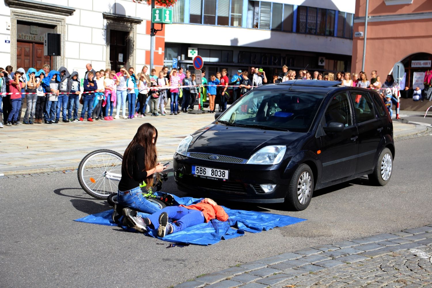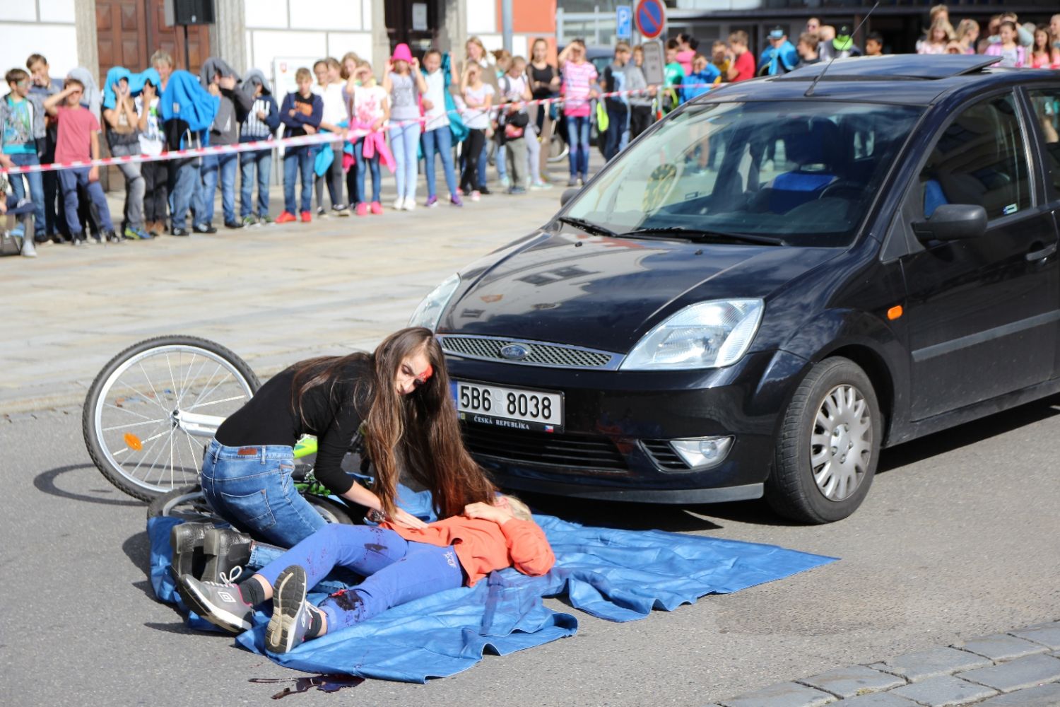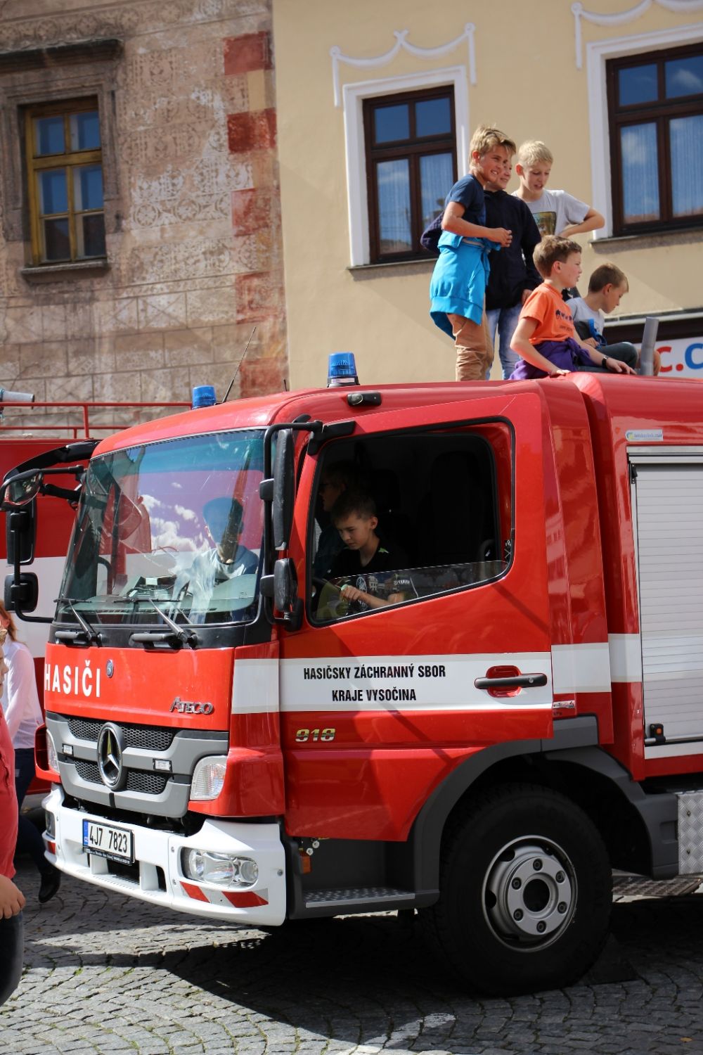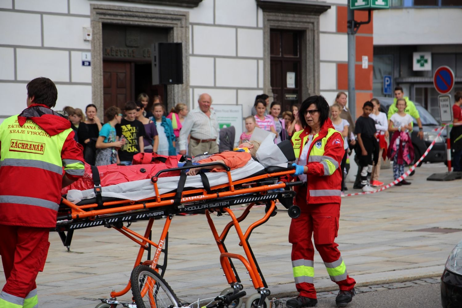 Houkání, blikající majáky a nářek zraněného provázely rychlý zásah zdravotnické záchranné služby při dopravní nehodě cyklisty s osobním autem na náměstí. Následovala bezpečná likvidace požáru oleje a benzinu profesionálními hasiči a práce policejních kynologů se služebními psy a následné zadržení pachatele. Zmiňované ukázky mohli vidět žáci škol i veřejnost, kteří se sešli dnes dopoledne na náměstí ve Velkém Meziříčí. Akci dokreslovala přehlídka techniky a zásahových vozidel. Děti mohly auta prolézt, prohlédnout si vybavení, usednout za volant. Posléze nadšeně uvítaly možnost pohladit si služebního psa, který se před chvílí tvrdě a bez milosti zakousl do rukávu pachatele, jenž po něm střílel z pistole, a hned poté trpělivě snášel desítky dětských rukou na svém těle.