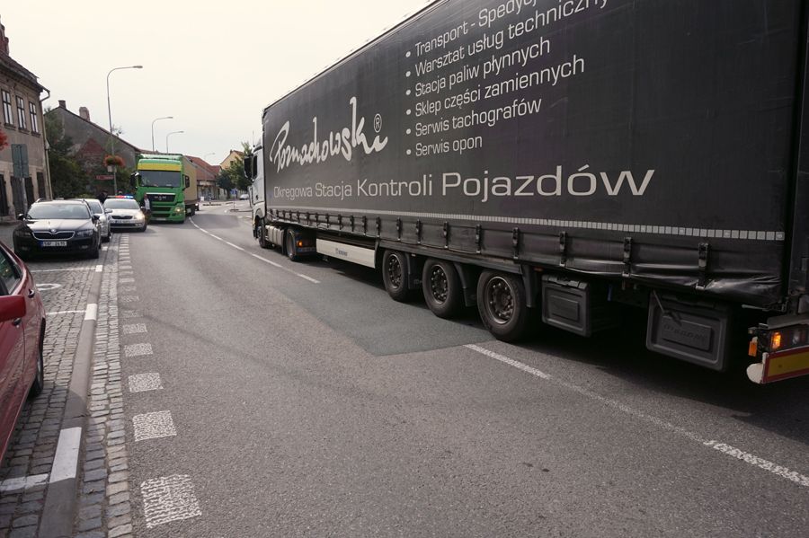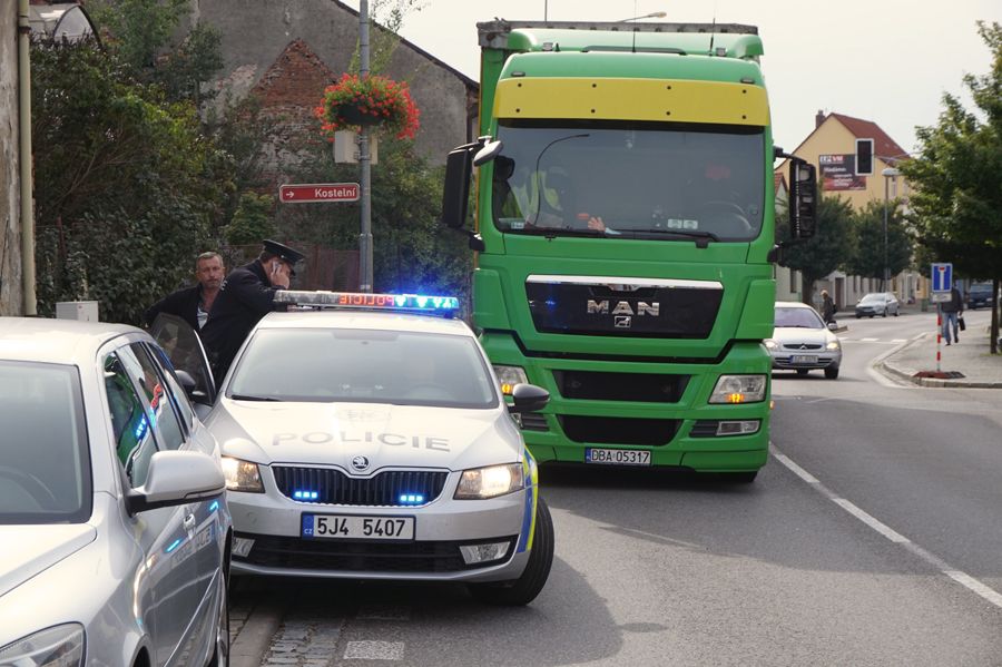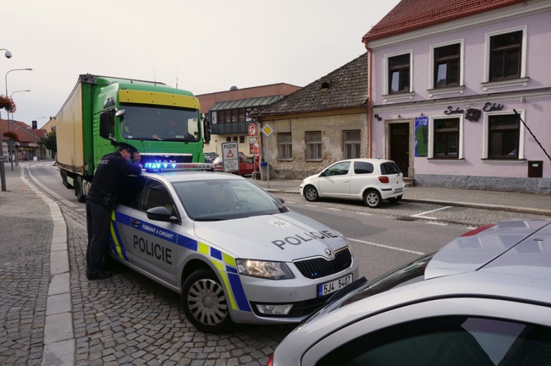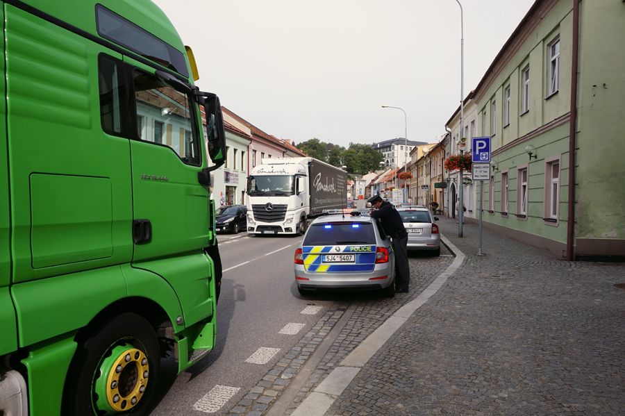 Dva polské kamiony pokutovali dnes policisté na Novosadech. Řidiči nedodrželi povinnou objízdnou trasu pro nákladní dopravu, která vede po dálnici D1. Hlídka Policie ČR je zastavila až u nové synagogy. Řidiči kamionů dostali pokutu a policisté je navedli zpátky na dálnici.