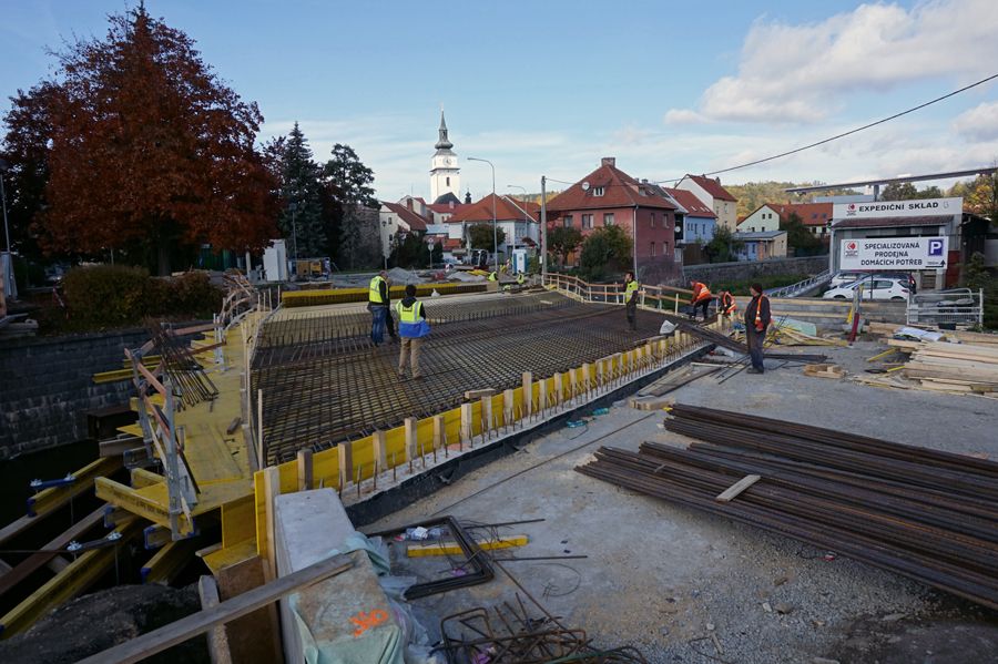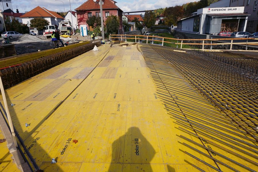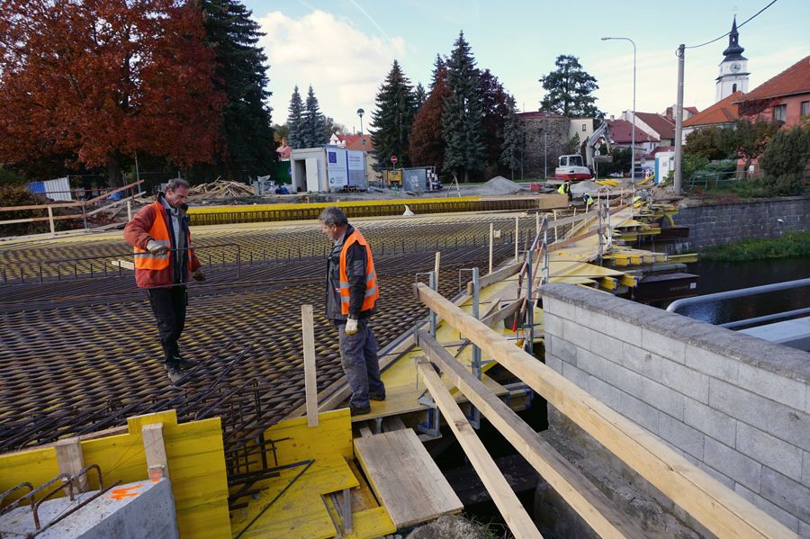 Velkomeziříčsku to dnes řekl stavbyvedoucí Josef Šopík s tím, že právě je položena první vrstva armovacího železa. Poté, co dělníci armaturu dokončí (další dvě vrstvy), začne firma s betonováním samotného mostního tělesa.