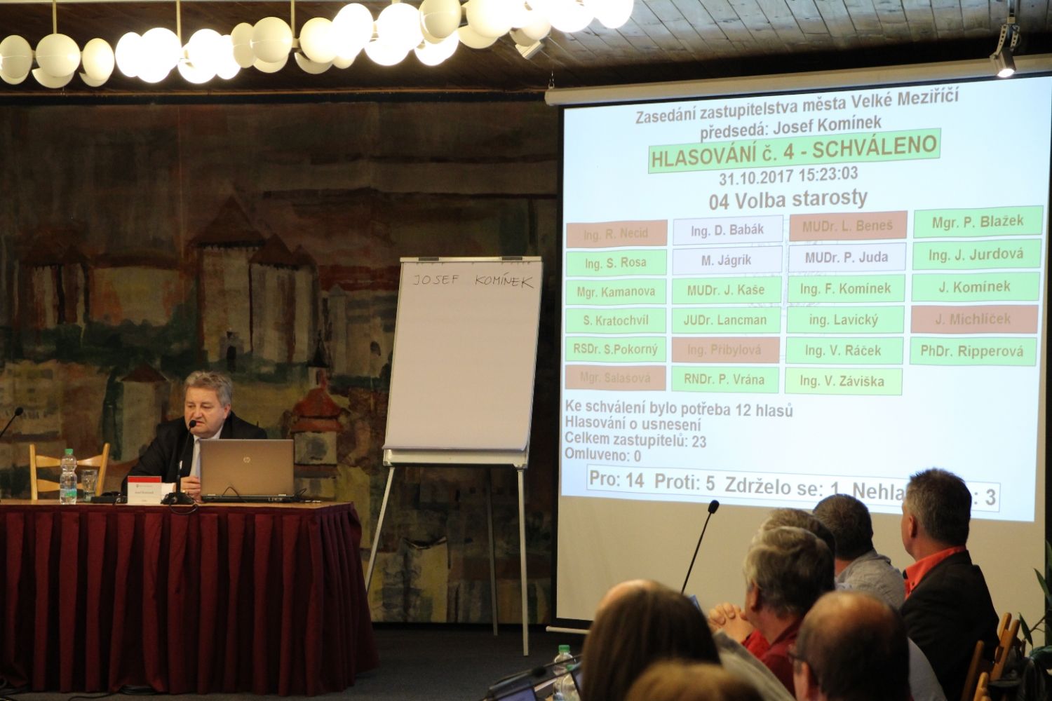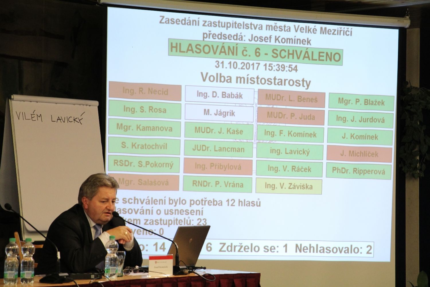 Velké Meziříčí má nového starostu. Právě se jím stal Josef Komínek. Dostal důvěru 14 zastupitelů. Povede město do konce tohoto volebního období, tedy do října 2018. A spolu s ním i nově zvolený místostarosta Vilém Lavický.
