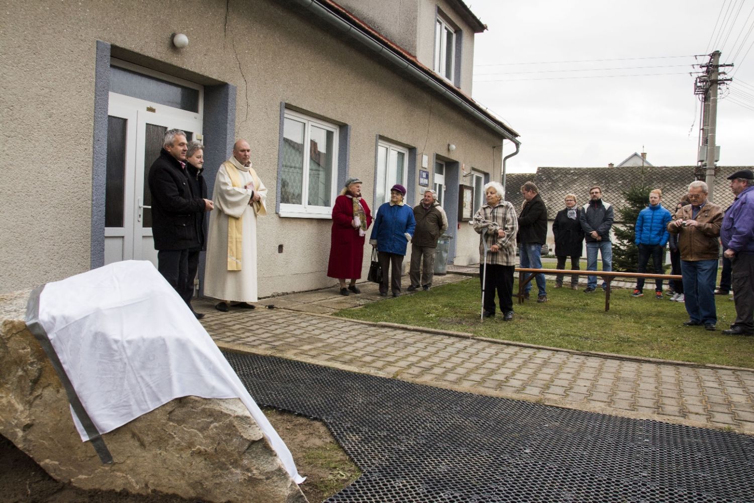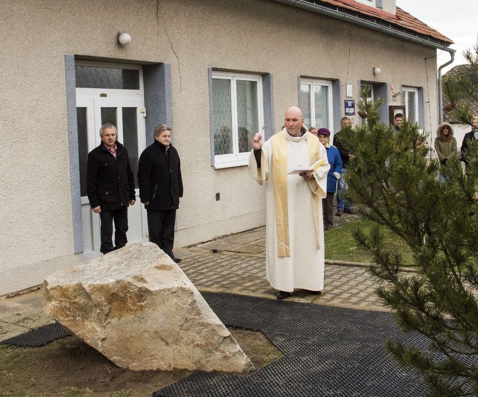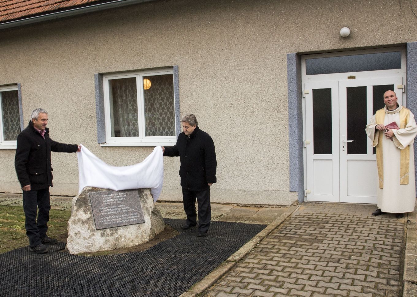 Zhruba šest desítek lidí, členové komise pro místní správu a vedení města Velké Meziříčí se sešli v sobotu odpoledne před kulturním domem v Hrbově k odhalení pamětní desky. Tu posvětil děkan Pavel Šenkyřík.
