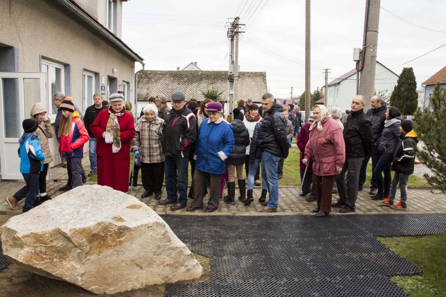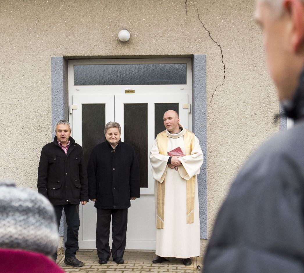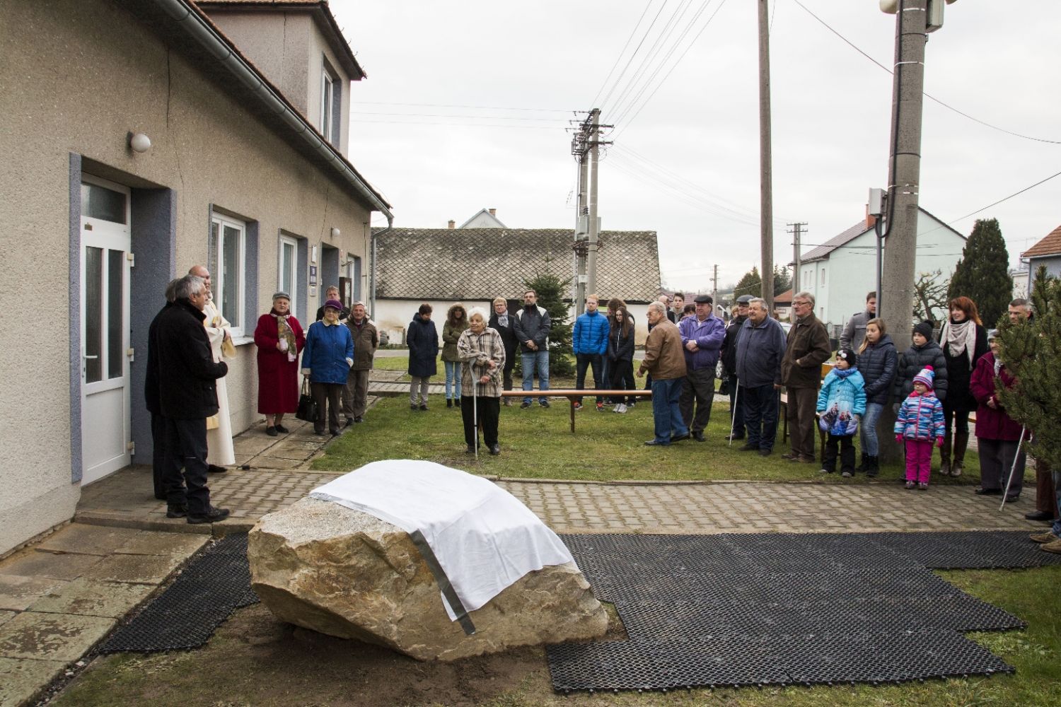 Zhruba šest desítek lidí, členové komise pro místní správu a vedení města Velké Meziříčí se sešli v sobotu odpoledne před kulturním domem v Hrbově k odhalení pamětní desky. Tu posvětil děkan Pavel Šenkyřík.