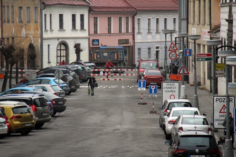 Uzavírka Komenského ulice prodlužuje do pondělí 27. listopadu, takže až do té doby se bude z náměstí vyjíždět Kostelní ulicí kolem Kotvičky.