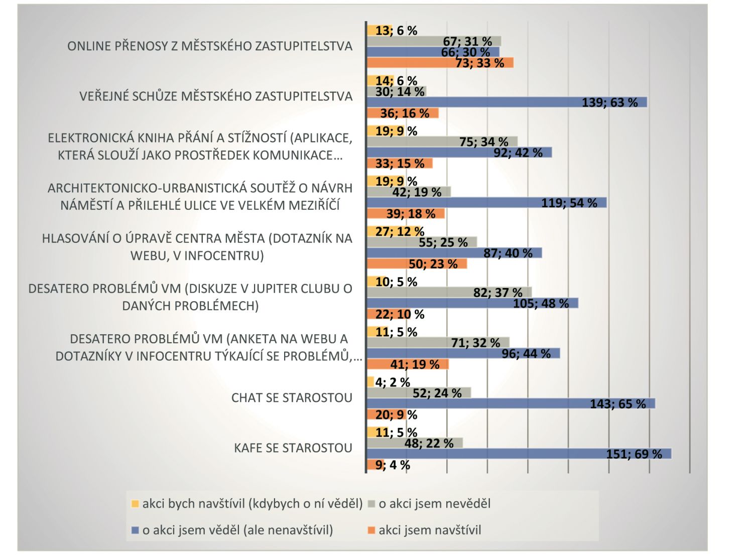 Účelem výzkumu bylo zlepšit angažovanost města, zanalyzovat spokojenost týkající se městských aktivit a věnovat se novým podnětům, které z výzkumu vyplynou - a to od chodu úřadu až po komunikaci města s námi, občany. Cílem však bylo také prostřednictvím dotazníkového šetření poukázat na pořádané akce a možnosti, které občané mají, pokud chtějí něco zásadního změnit či vyjádřit se. Výsledky byly prezentovány také zastupitelům města Velkého Meziříčí dne 25. 1. 2018.