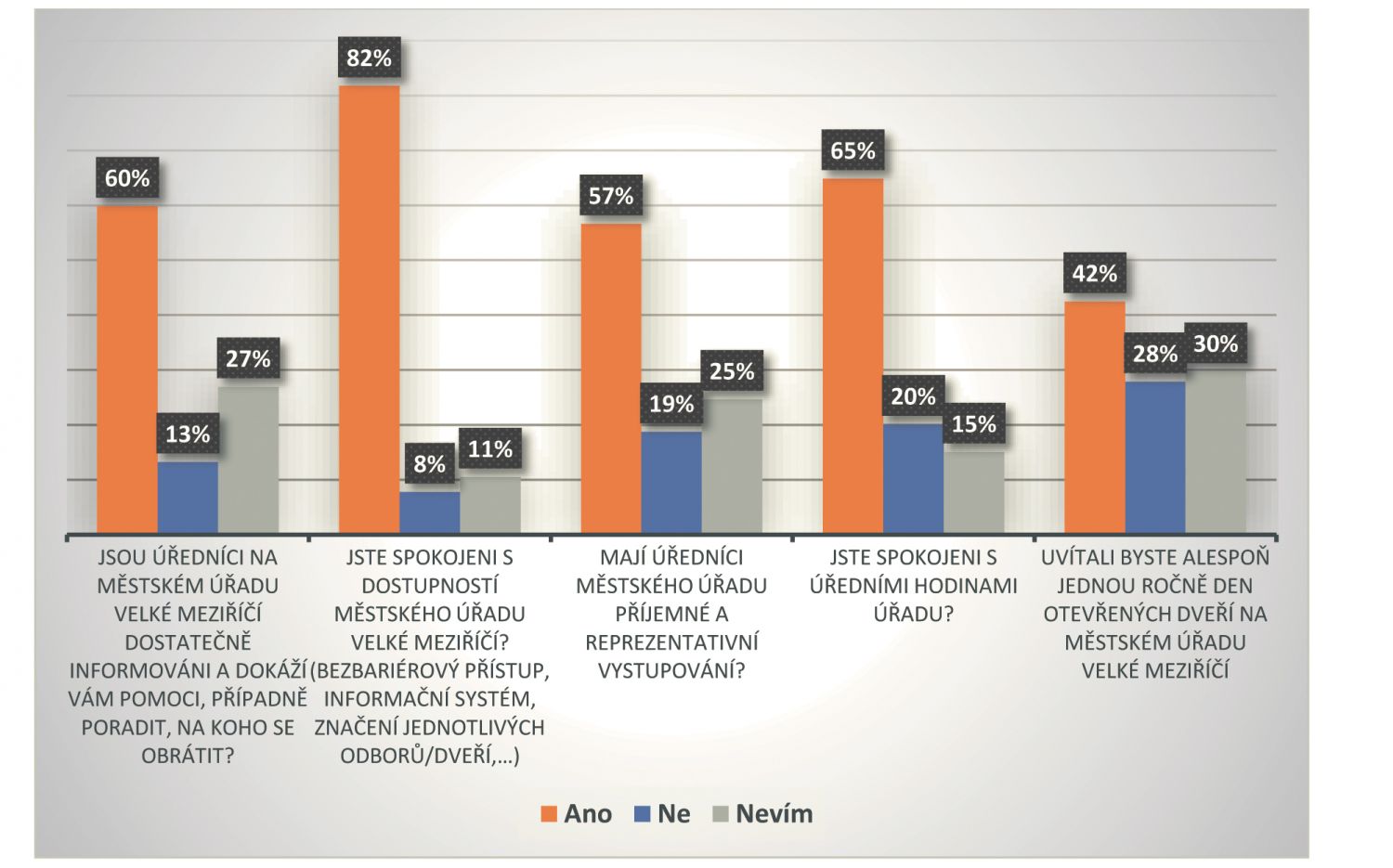Úředníci na MěÚ dokáží pomoci, případně poradit, na koho se obrátit. Lidé jsou spokojení s dostupností úřadu. Jsou také přesvědčeni o tom, že úředníci jsou příjemní a mají reprezentativní vystupování.