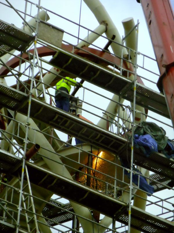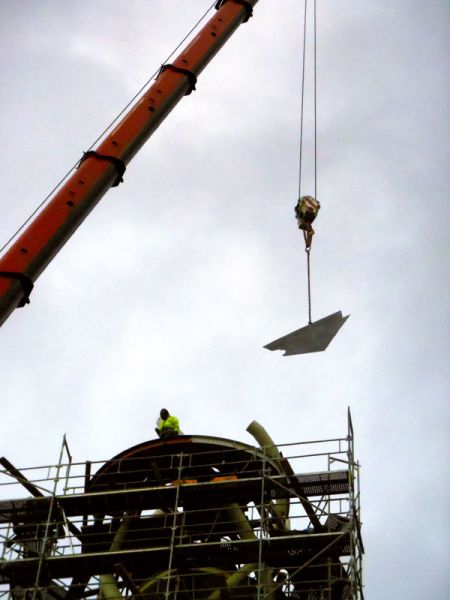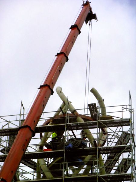 Příprava a montáž kovové konstrukce byla náročná kvůli své nepravidelnosti a probíhala přímo na místě. Tvoří ji zhruba 40 tun oceli. Povrch konstrukce vzhledem k rozměrům jednotlivých prvků nebylo možné pozinkovat, proto je natřen světlešedou barvou, jež by měla vydržet 20 let.