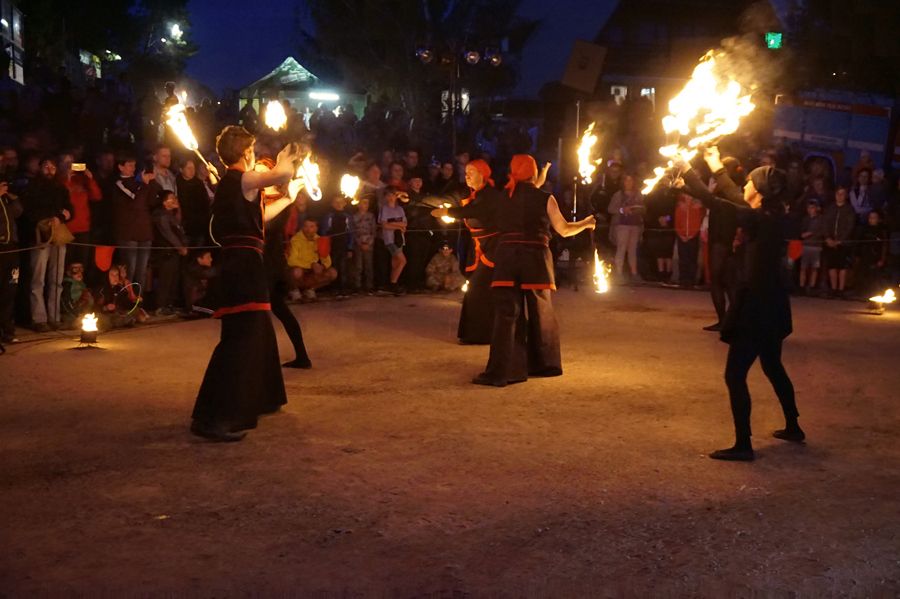 Program začal už v 17 hodin shromážděním u katovny a průvodem na kopec nad město. Zde na návštěvníky čekaly nejen dětské soutěže v režii Městské knihovny a Dózy, ale i velký stan se skupinou Stetson, stánky s občerstvením a ohně k opékání buřtů.