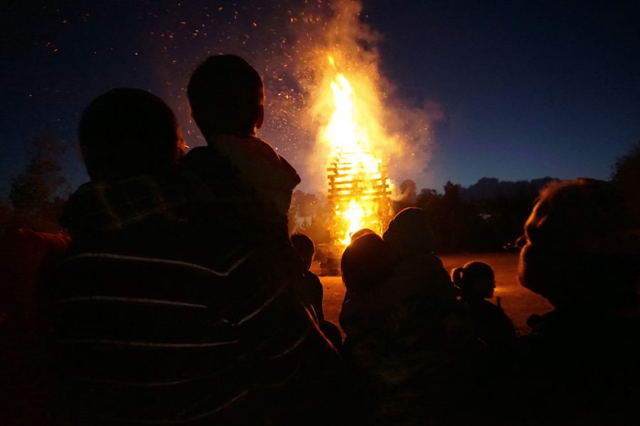 Stovky lidí, spokojené děti a tajemné hry s ohněm. Na Fajtově kopci už popáté zaplála obří hranice při tradičním pálení čarodějnic.
