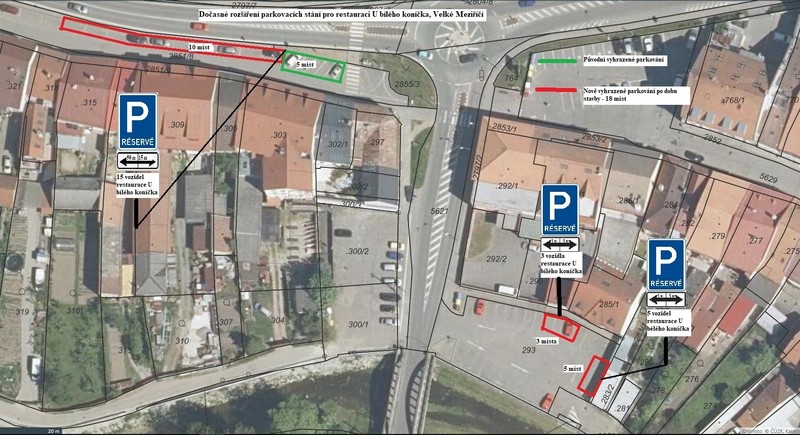 Město pro hosty restaurace U Bílého koníčka vyhradí deset míst před provozovnou a osm míst za drogerií. Celkem bude mít restaurace vyčleněno 23 míst.