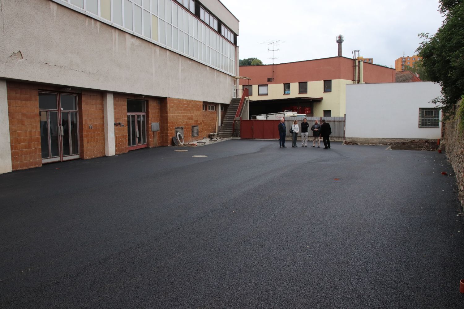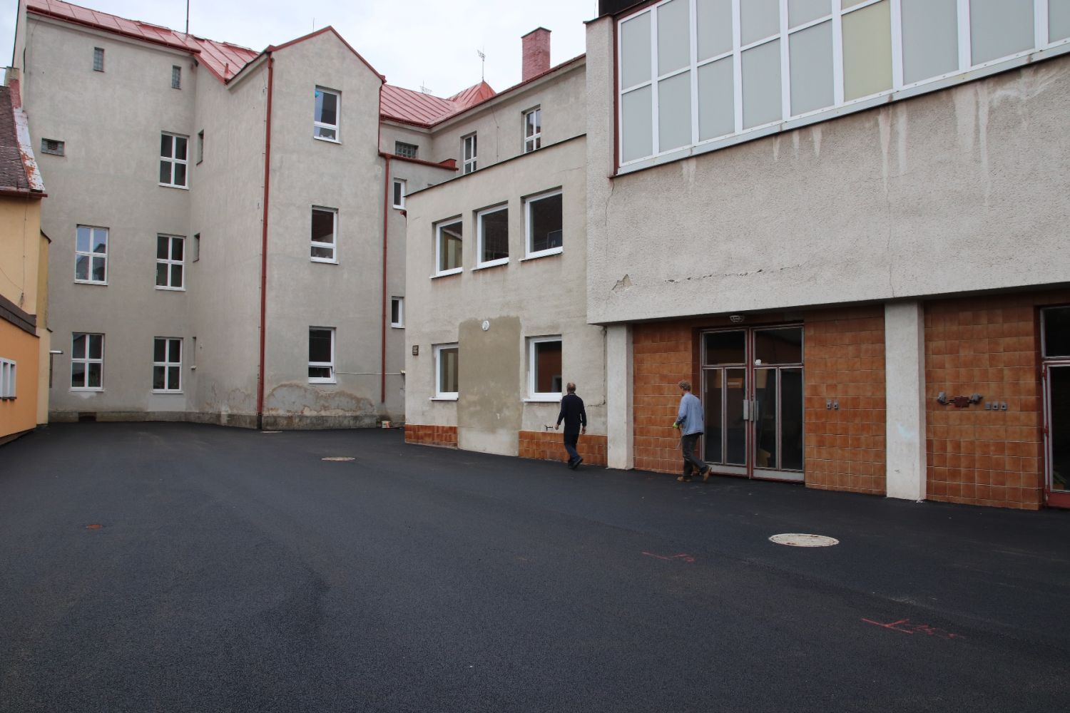 Na dvoře za tělocvičnou základní školy na Komenského ulici vzniká prostor pro venkovní vyžití žáků. Úprava bude stát celkem dva miliony korun.