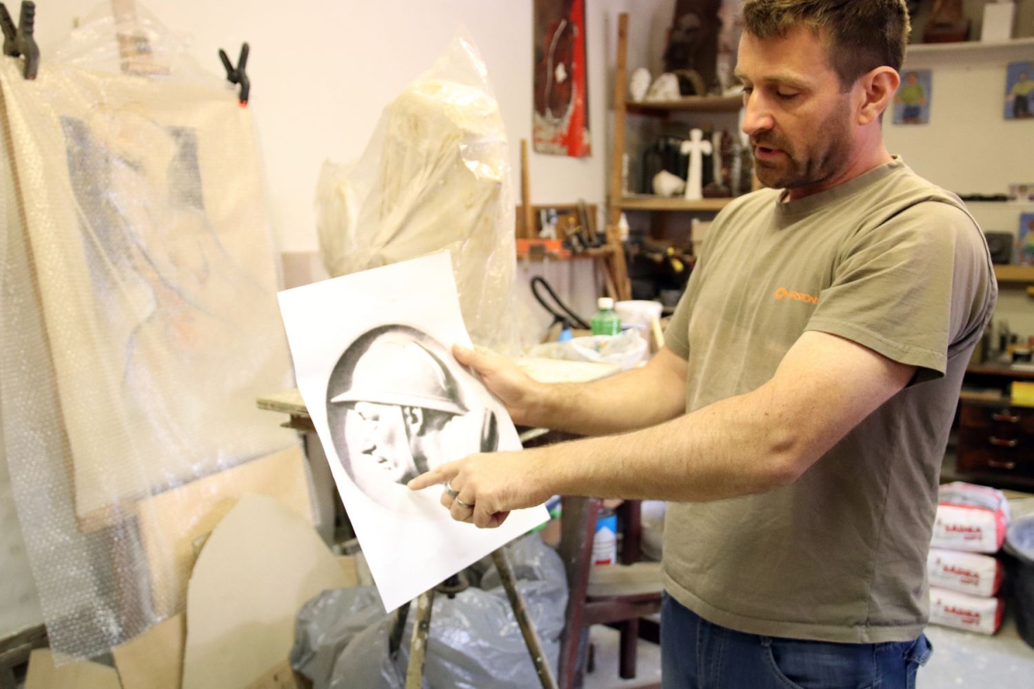 Sochař Jiří Marek ml., vnuk velkomeziříčského rodáka, akademického sochaře Jiřího Marka, už má ve své dílně v Medlově reliéf hlavy legionáře vymodelovaný z hlíny. Tvořil ho několik týdnů podle dochované dobové fotografie. „Ze sochařské hlíny se reliéf přes sádrovou formu postupně odlije do sádrového pozitivu. Na něm pak proběhne drobná retuš a po ní půjde pozitiv ke slévači, který ho zajádruje do stavačského písku a pak odlije do bronzu. I bronz se bude cizelovat kvůli doladění detailů a závěrem na něj přijde patina,“ popisuje postup výroby reliéfu Jiří Marek.