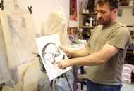 Sochař Jiří Marek tvoří reliéf na pomník u gymnázia