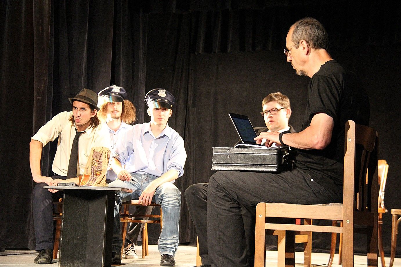 (fotogalerie zachycuje představení divadla Ikaros, komedie Descartovi parťáci a Karlíček s.r.o.)