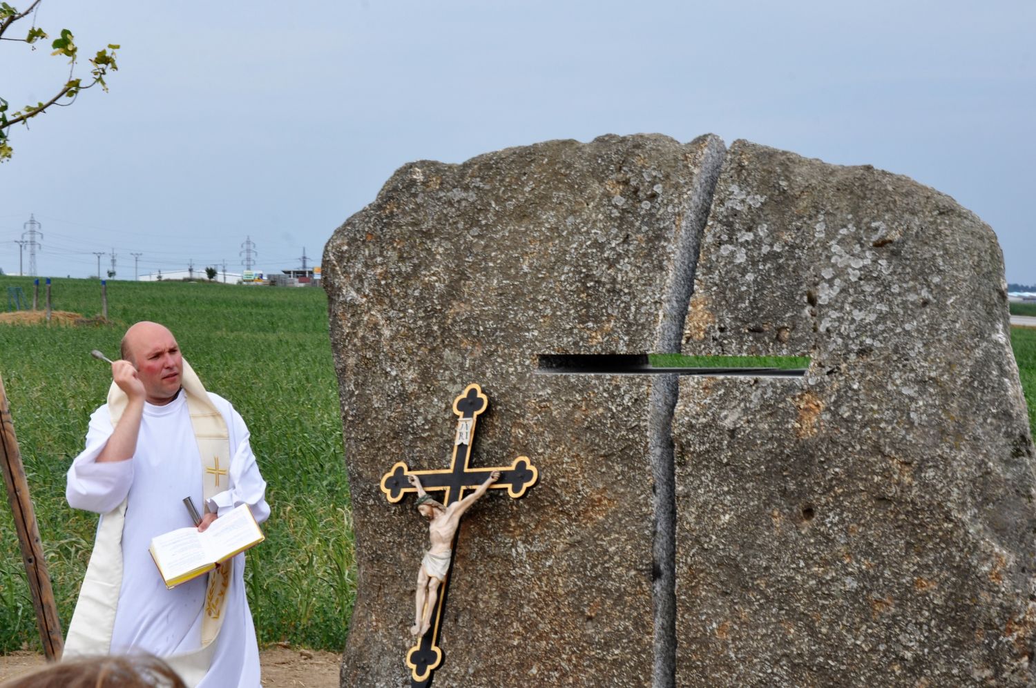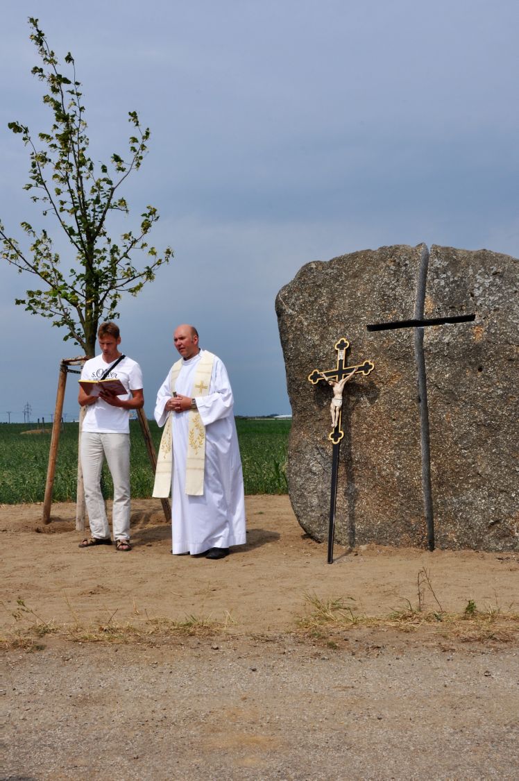 Kamenný kříž mezi Oslavicí a Velkým Meziříčím byl v neděli 5. srpna požehnán za účasti osmi desítek lidí.