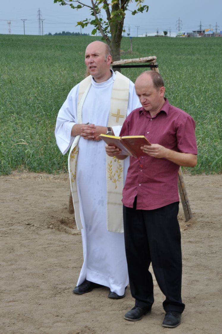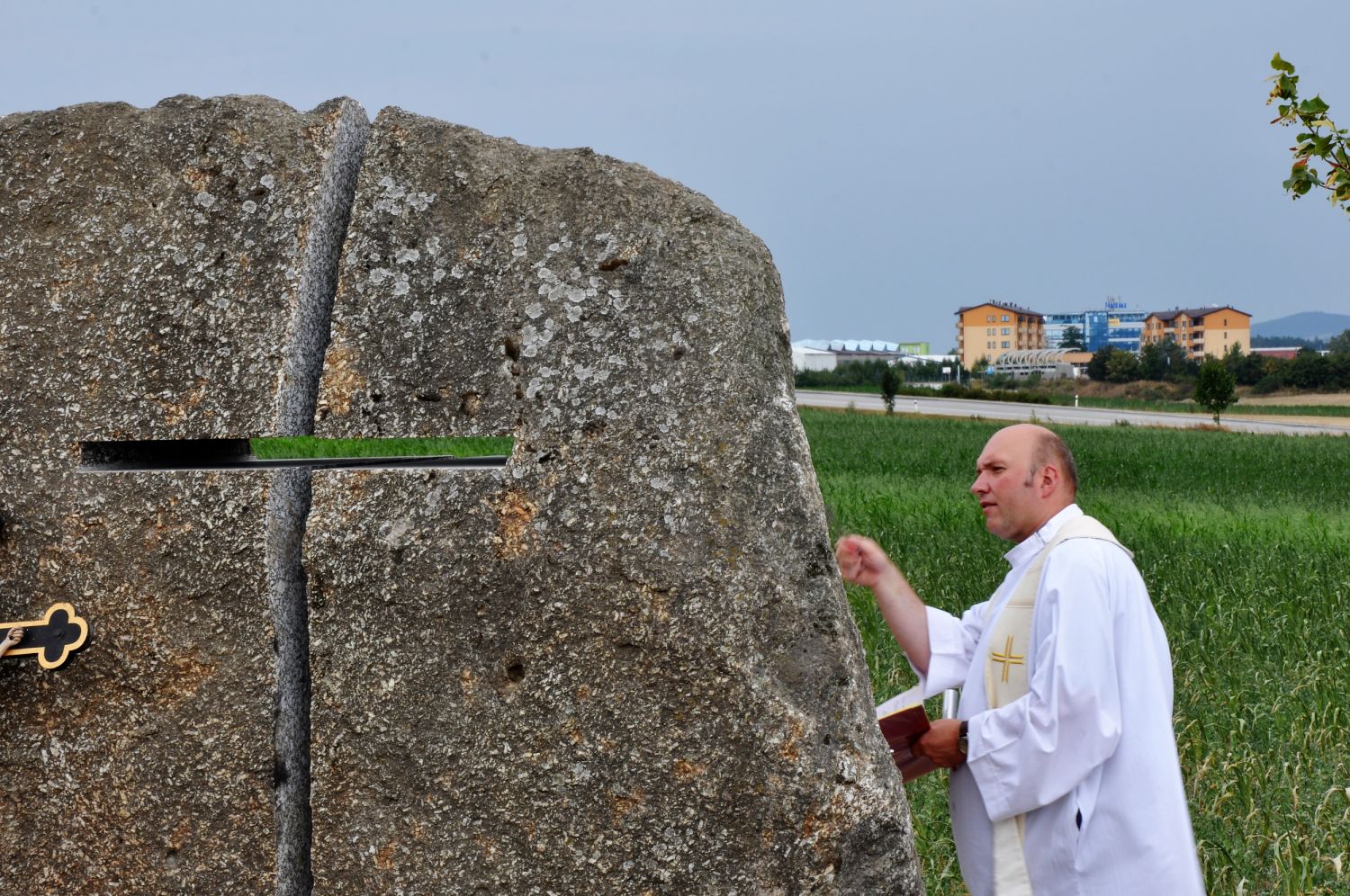 Asi osmdesát lidí z Oslavice, Velkého Meziříčí či třeba i z Brna se vypravilo ke kříži, jehož žehnání se ujal o. Pavel Šenkyřík. Dobrá polovina účastníků akce šla na místo průvodem rovnou z oslavické poutní mše, další dorazili auty. „Byl jsem překvapen velkou účastí lidí i velmi příjemnou atmosférou. Po žehnání kříže se lidé hned nerozutekli, ještě jsme nějakou chvíli pobyli, debatovali,“ zhodnotil akci jeden z jejích iniciátorů Tomáš Chlubna a popsal průběh dokončení prostranství kolem kříže. Ještě chybí jednoduchá dřevěná lavička. „Ta by snad měla být během čtrnácti dnů hotová a pak ji hned umístíme. Stejně jako krajní body, které by měly být asi z dřevěných hranolů. Trávník zasejeme až někdy na podzim, protože v tomhle počasí by to určitě nemělo cenu. Pak už to bude kompletní,“ dodal Chlubna.