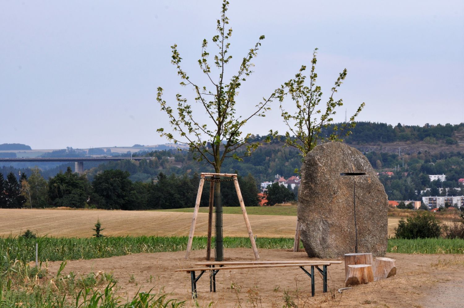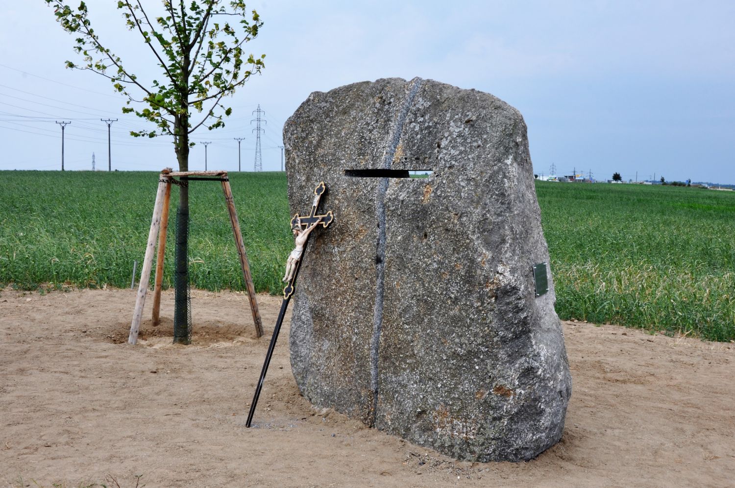 Nový kříž osázený dvěma lípami stojí u cesty v polích, nad bývalým závodištěm, v místě s krásným výhledem na město a do všech světových stran. Tam, kde původně měla být průmyslová zóna u obchvatu. Nahradilo ji duchovní místo s kamenným křížem jako poděkování. Vzniklo díky nezištné pomoci spoluobčanů z Velkomeziříčska.