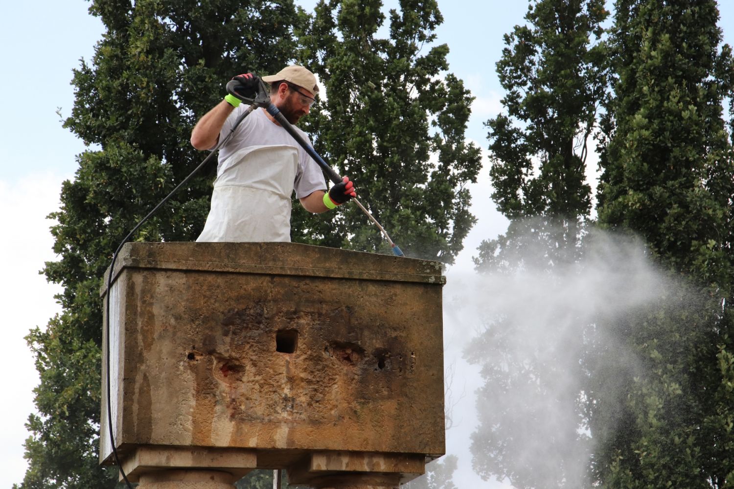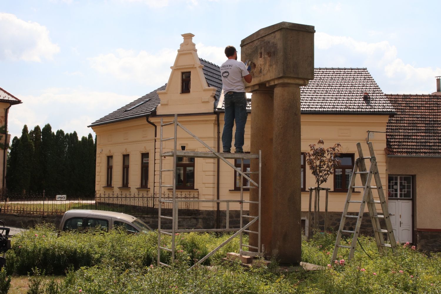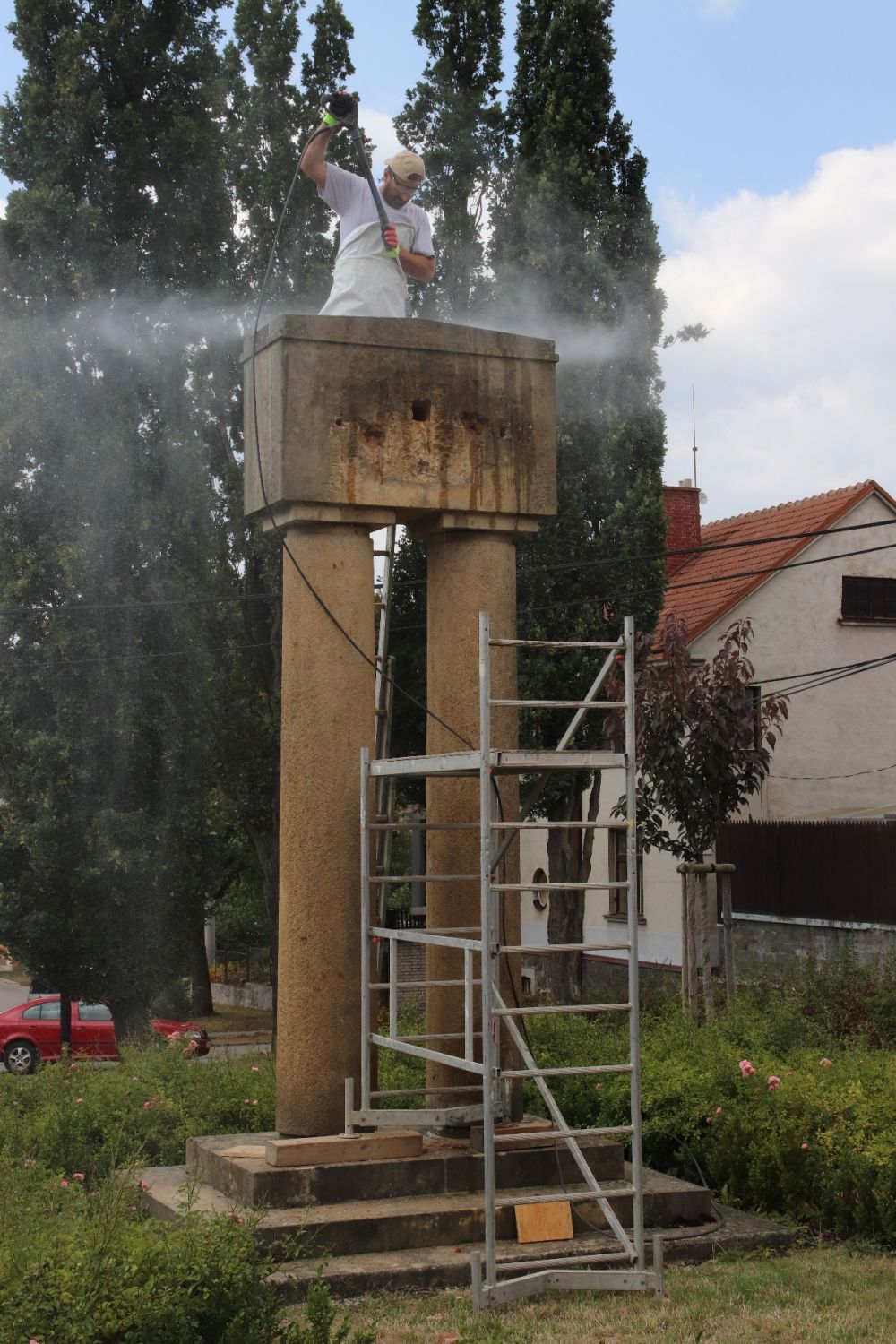 Sochař Jiří Marek v těchto dnech pískovcový pomník očistil. Sňal bronzový reliéf kříže s nápisem Padlým 1914–1919, který projde též obnovou a po ní se vrátí na své místo z pohledu od řeky. Zepředu posléze bude instalován nový bronzový reliéf hlavy legionáře, který z pohledu od gymnázia původně byl, ale ztratil se. Jeho kopii má Jiří Marek ve své dílně již zhotovenou podle dobové fotografie.