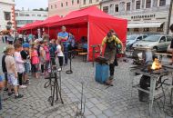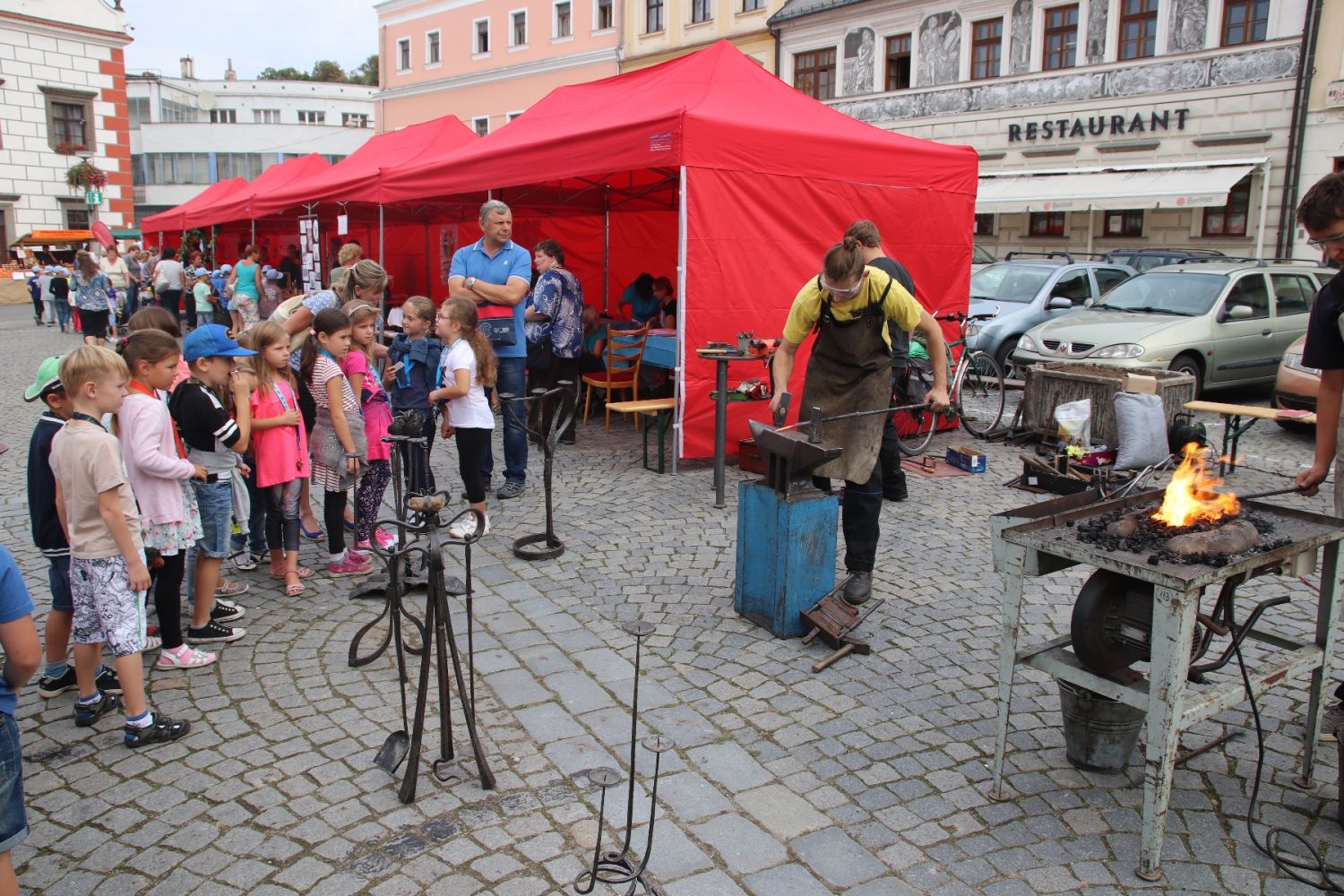 Jak se žilo před 100 lety ve Velkém Meziříčí ukazuje dnešní Den zdraví. Náměstím se rozléhá bušení kladiva do kovadliny, zní tóny dřevěné píšťalky, vrčí soustruh, voní bramborák a všude je spousta dětí ze škol i dospělých návštěvníků.