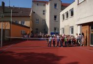 "Stojíme zde na krásném sportovišti, které bude sloužit vám všem," řekl žákům i učitelům starosta Josef Komínek a dodal, že na hřiště bylo vyčleněno asi 2,6 milionu korun z rozpočtu města. "Jsem rád, že se to stihlo v této době, kdy děti nastoupily do škol," uzavřel starosta.