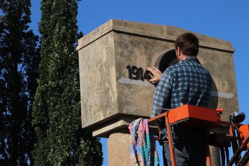 Sochař Jiří Marek v uplynulých dnech pomník padlým očistil, osadil zepředu novým bronzovým reliéfem hlavy legionáře a zezadu reliéfem kříže. Pomník je nyní uveden do původního stavu, v jakém byl při svém prvním odhalení 28. října 1933.
